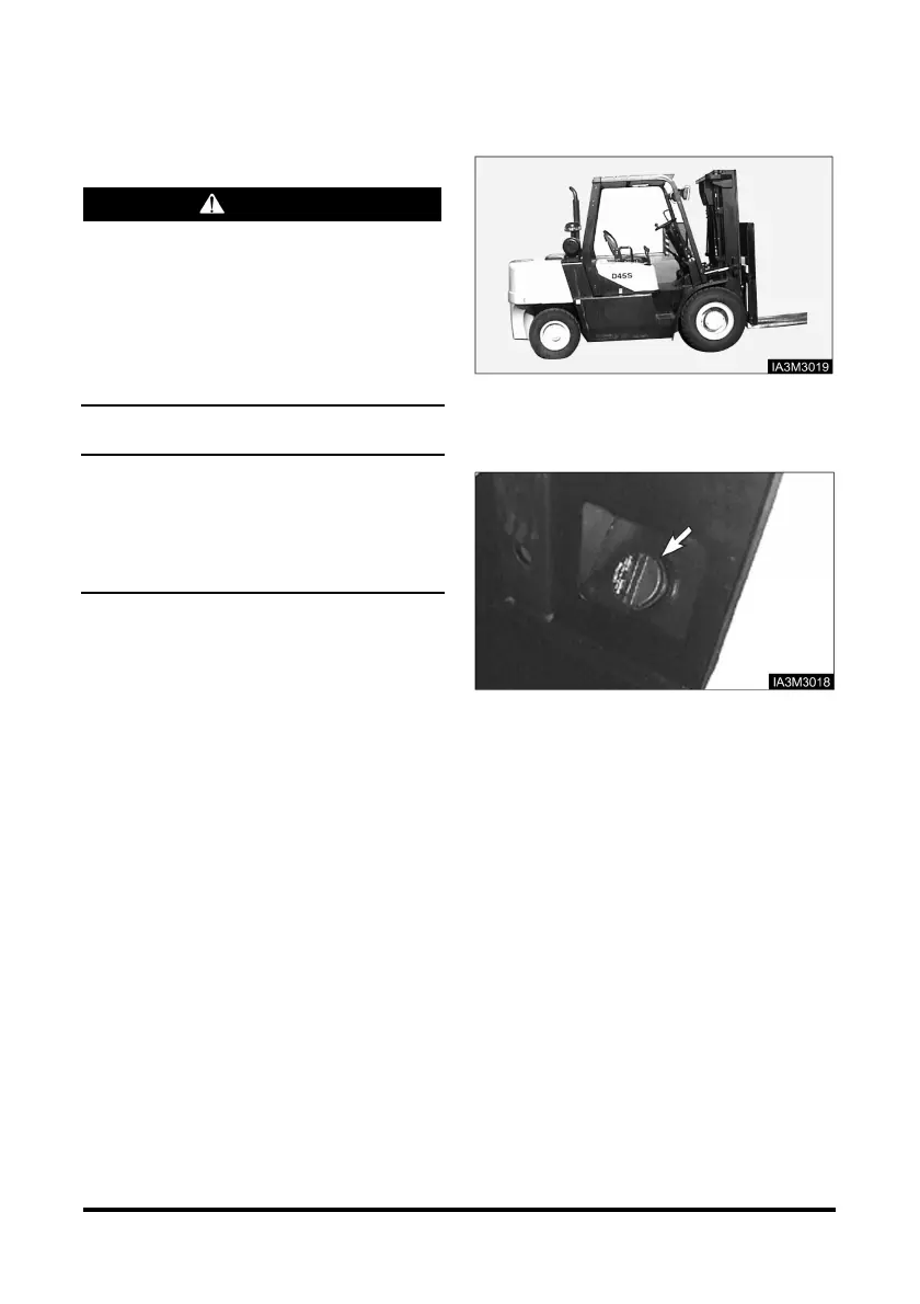 Do not allow the lift truck to become low on fuel or