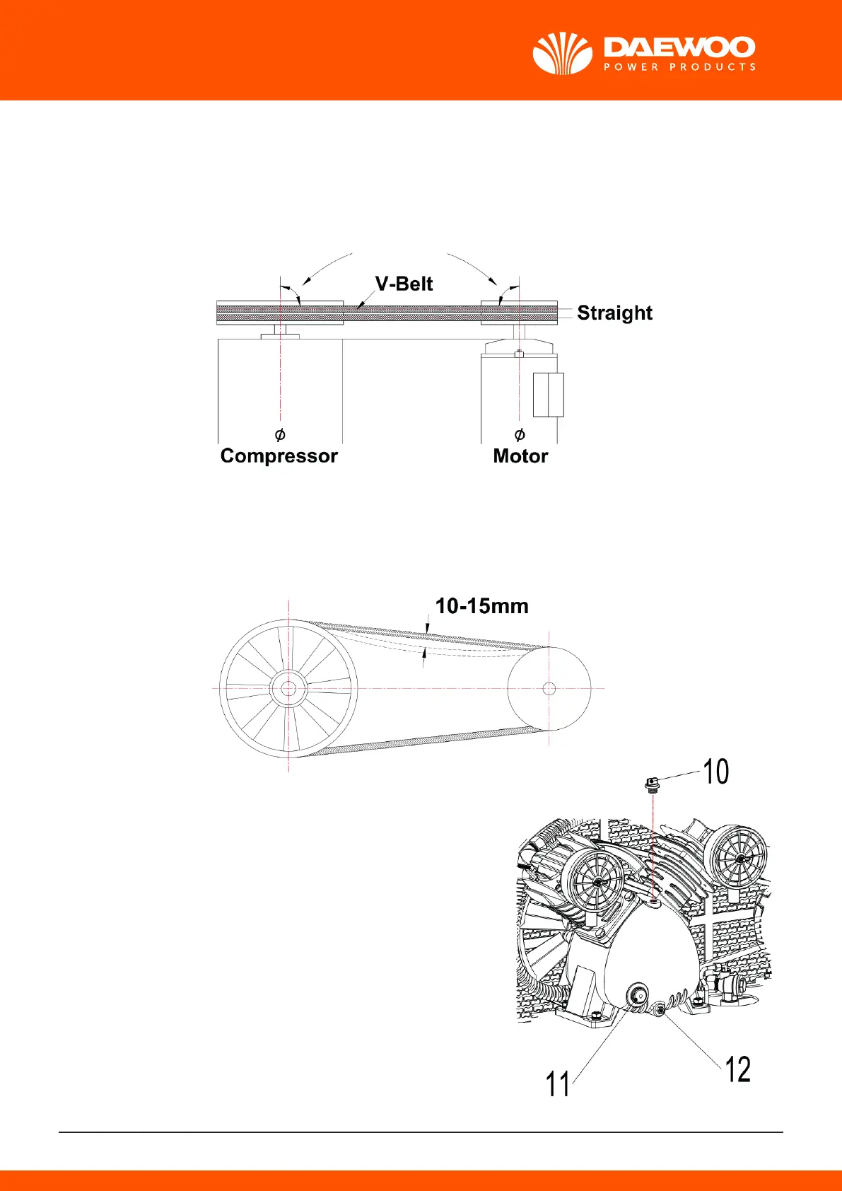 *a level place for assemble and check the compressor easily. The belt side should near the wall, but