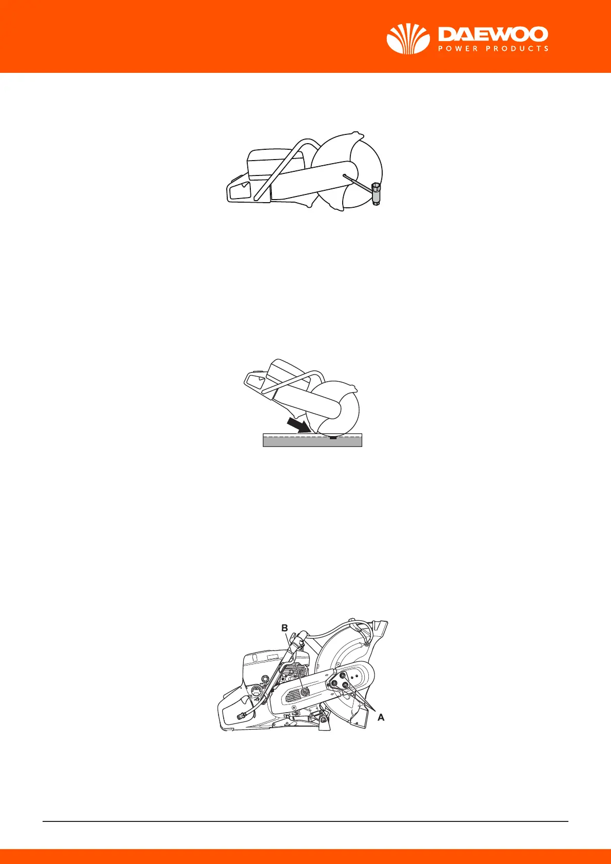 level, restricted only by the thickness of the blade guard. In the event of a kickback it is harder to