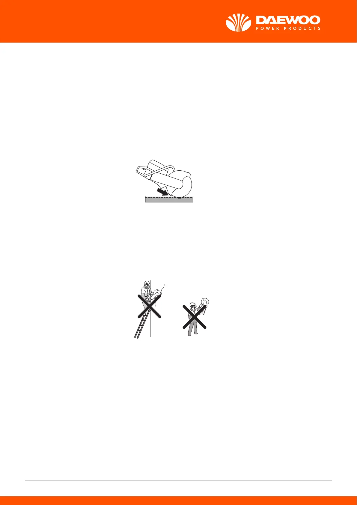 - Never cut from a ladder. Use a platform or scaffold if the cut is above shoulder height. Do not
