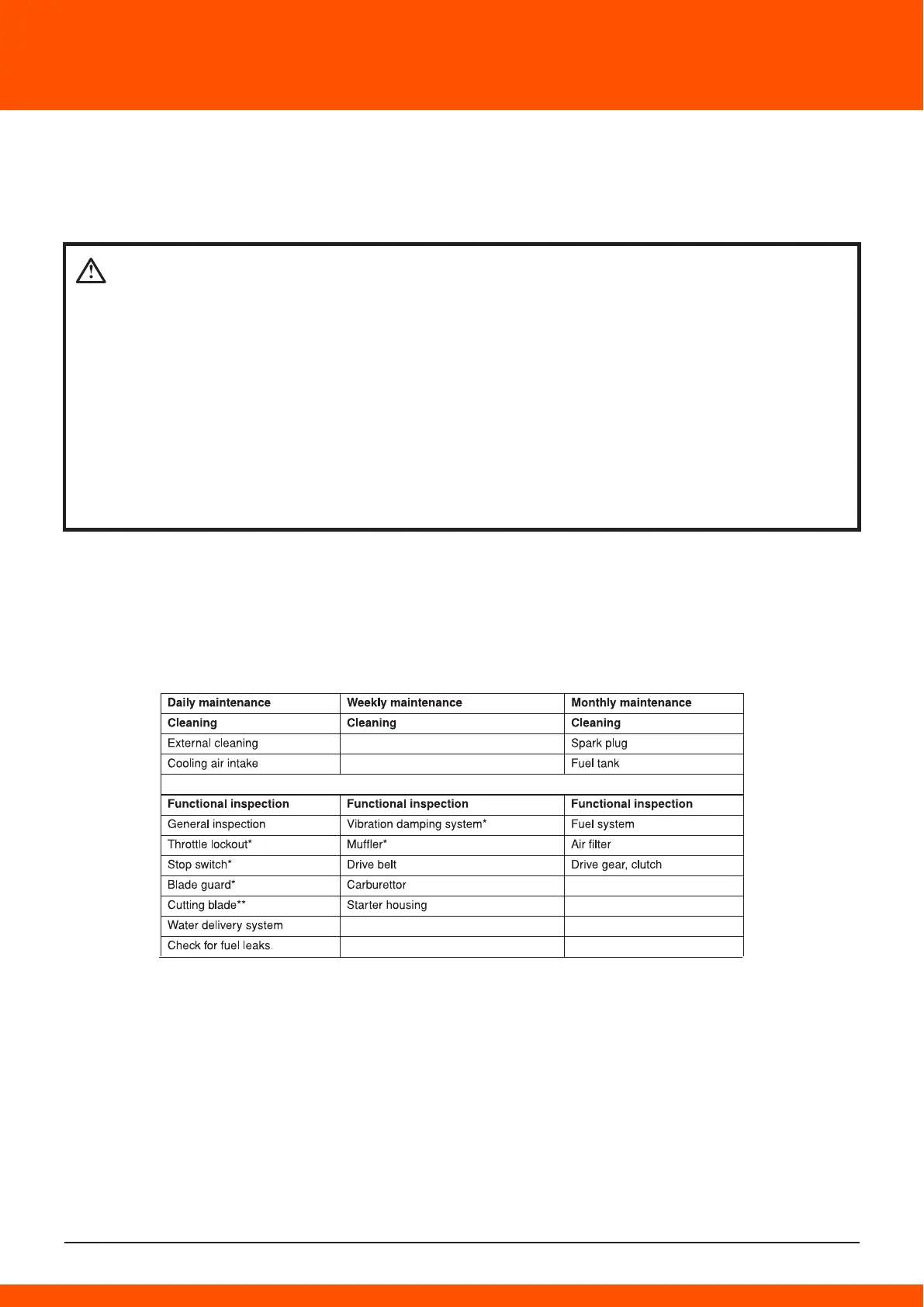 WARNING! The user must only carry out the maintenance and service work des-