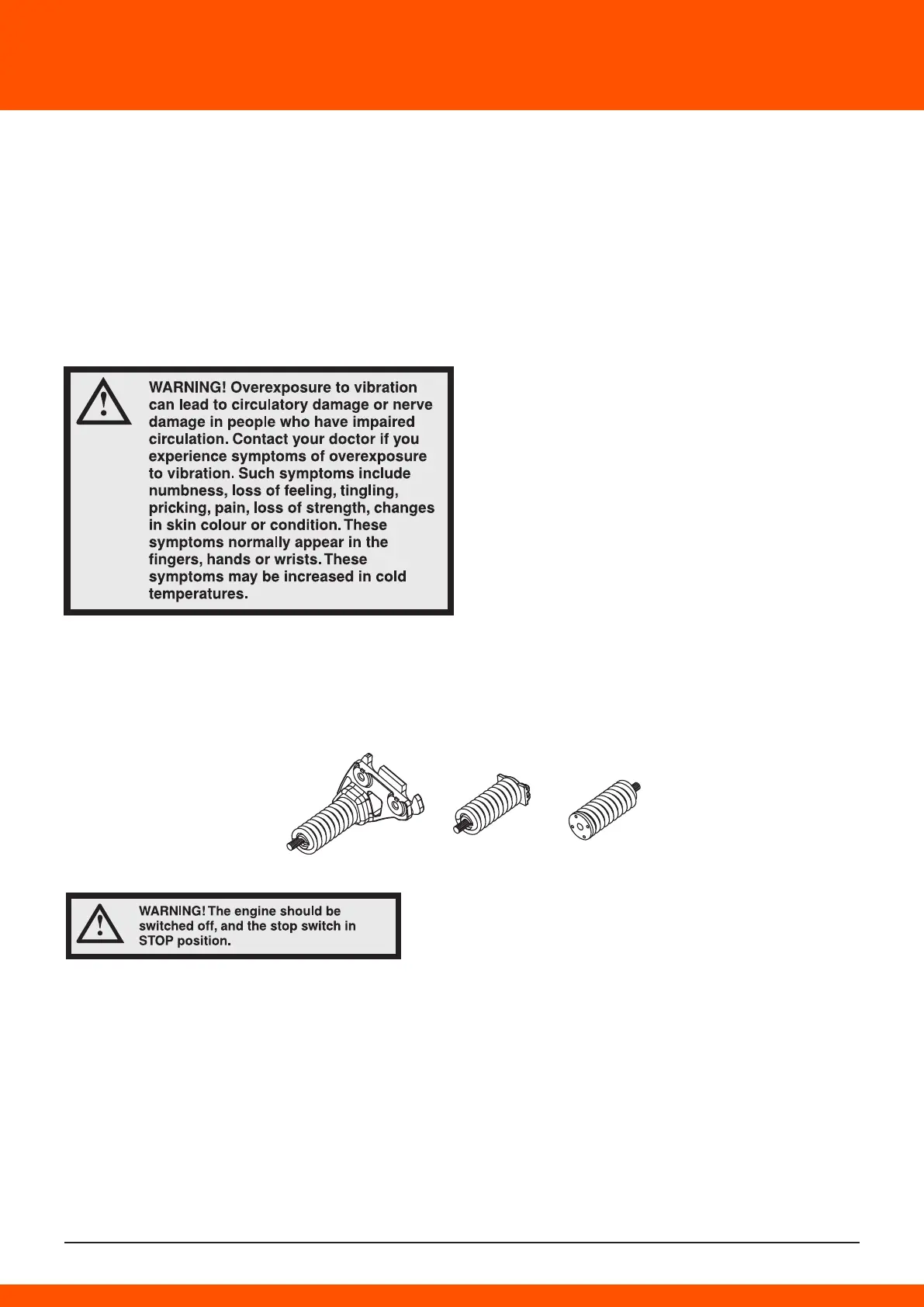 Check that the vibration damping element is securely attached between the engine unit and handle