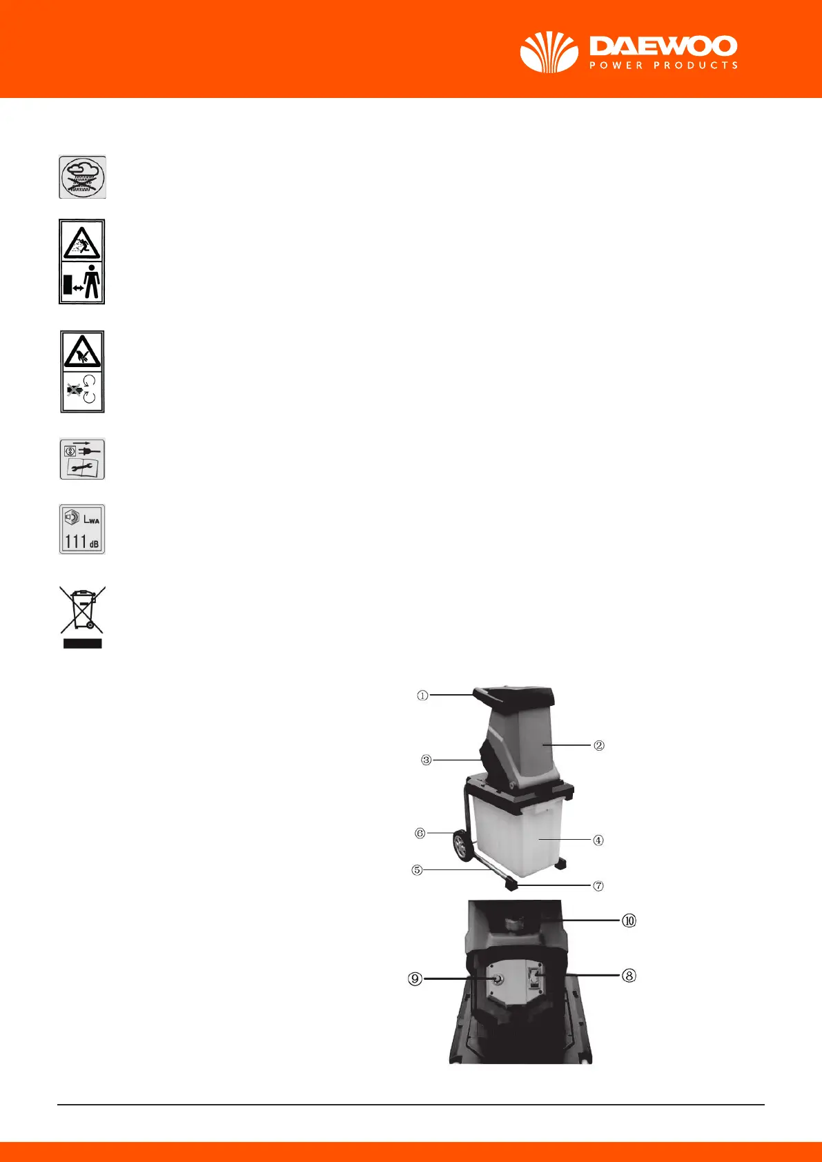 • If the chipper is blocked, rst switch off the device, pull the plug out of the socket and wait until the