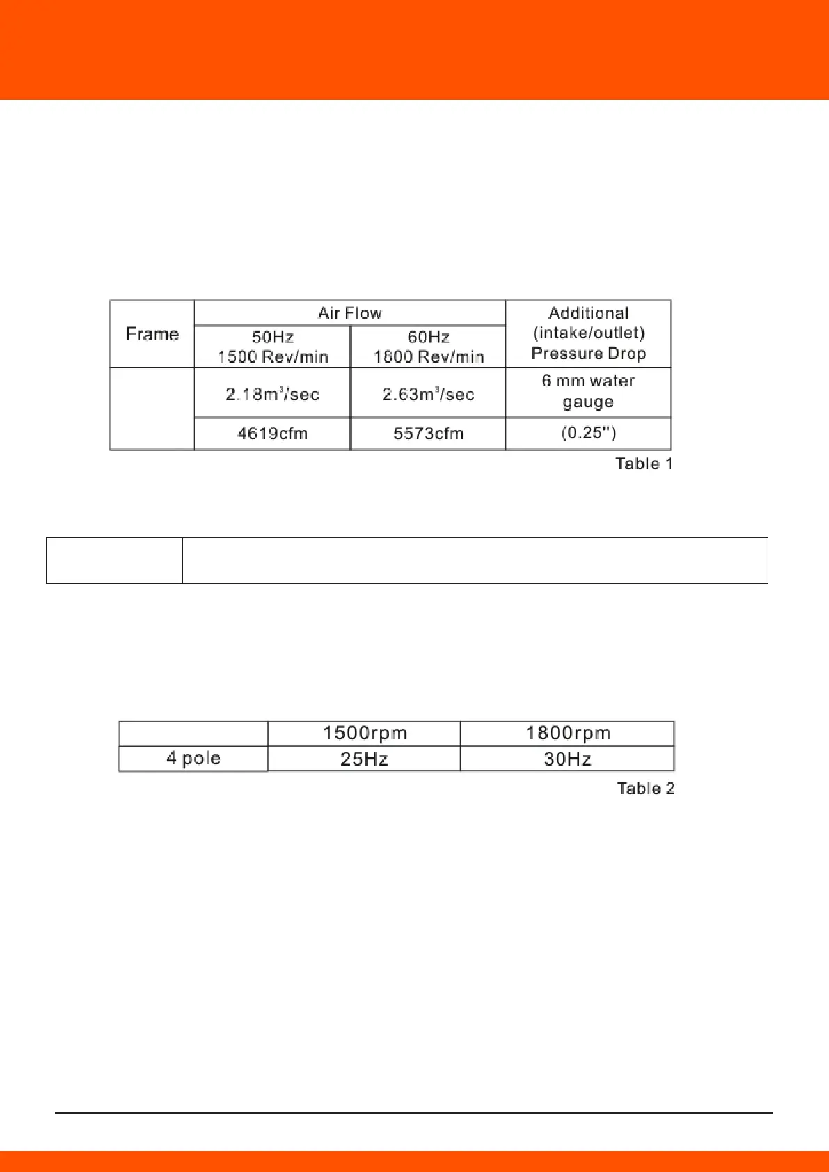 The air intake/outlet must be suitable for the air ow given in the following table with additional