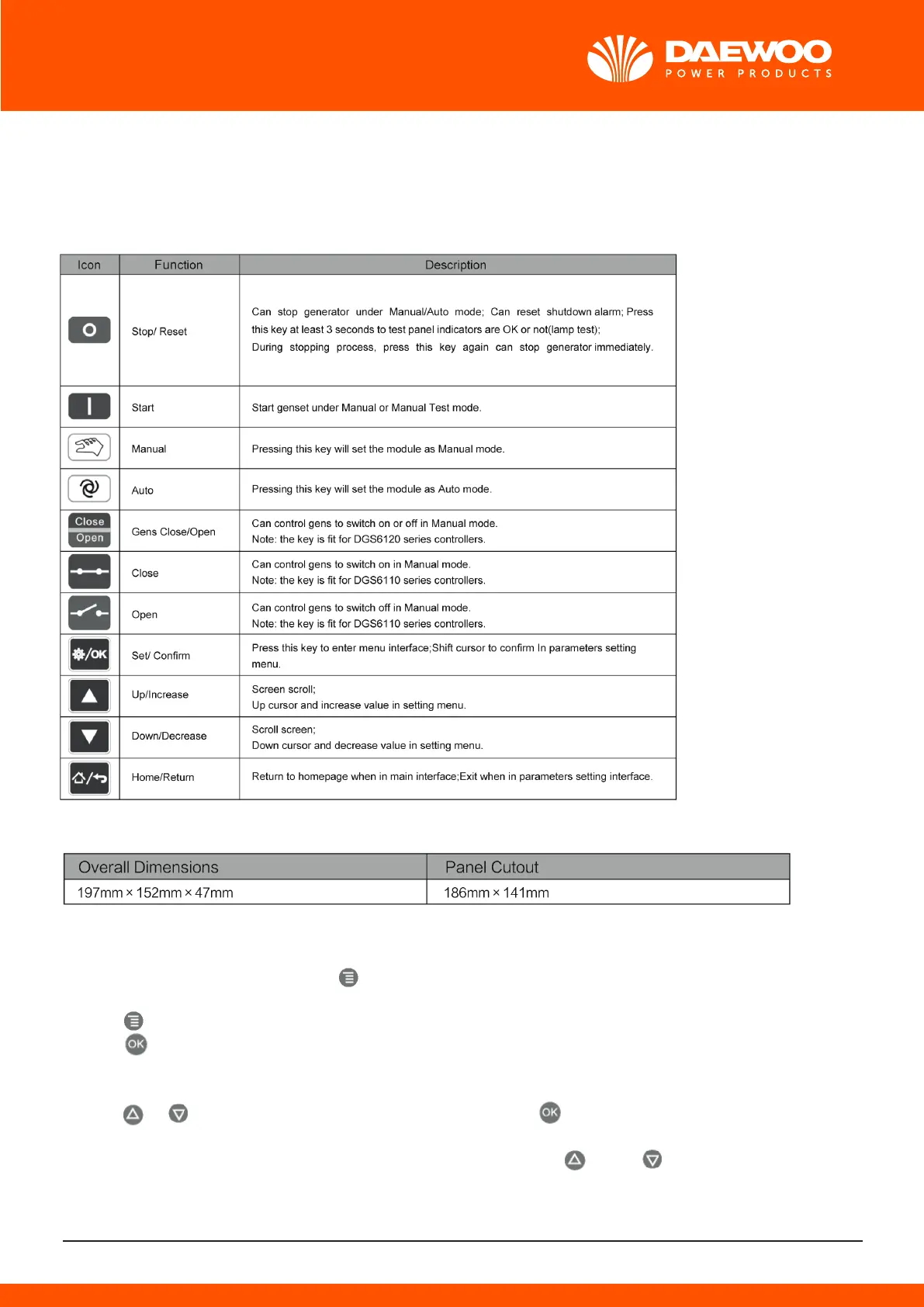 After controller powered on,press to enter ito the parameters setting menu,the menu item