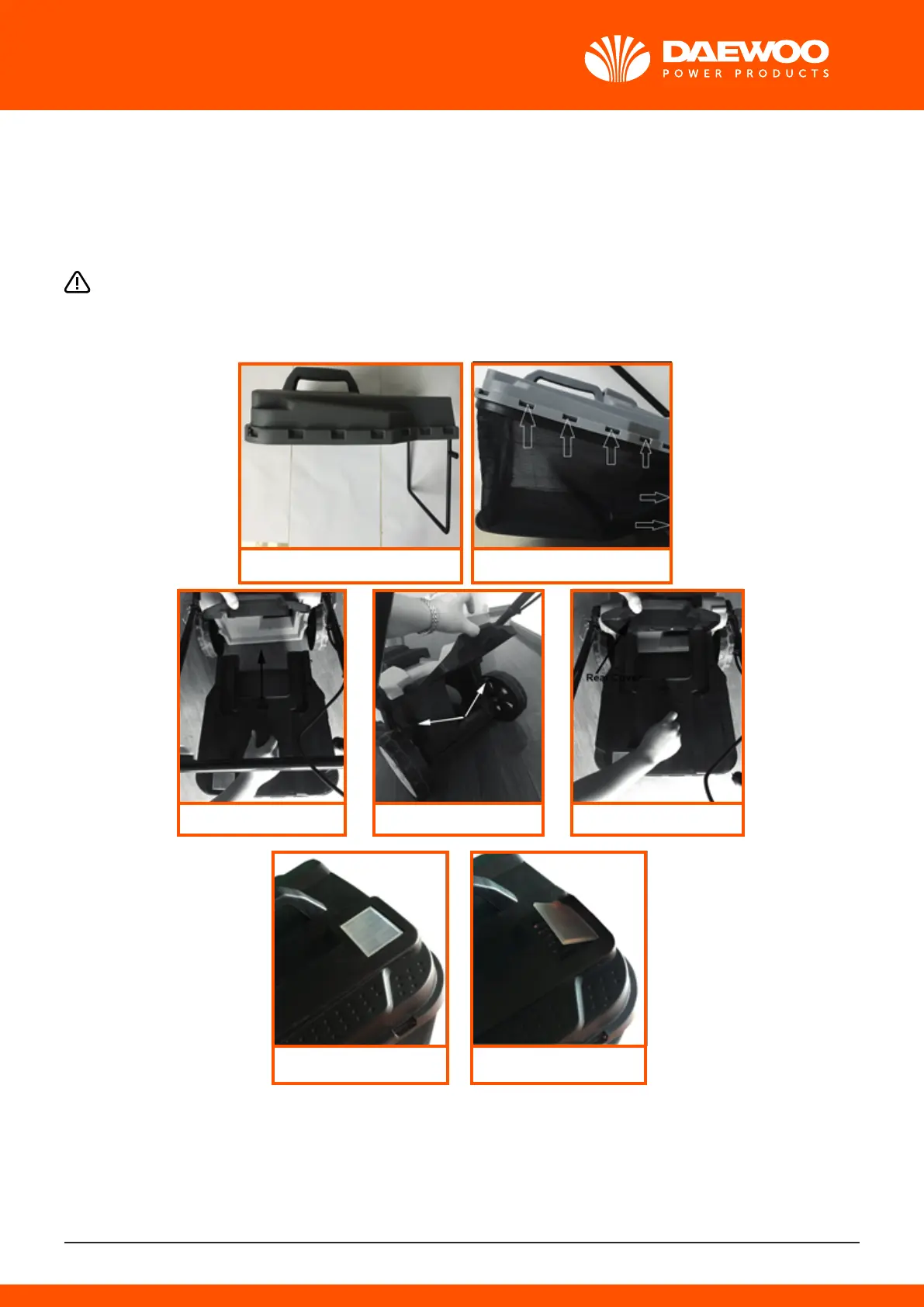 2. To remove: grasp and lift the rear cover, remove grass catcher.