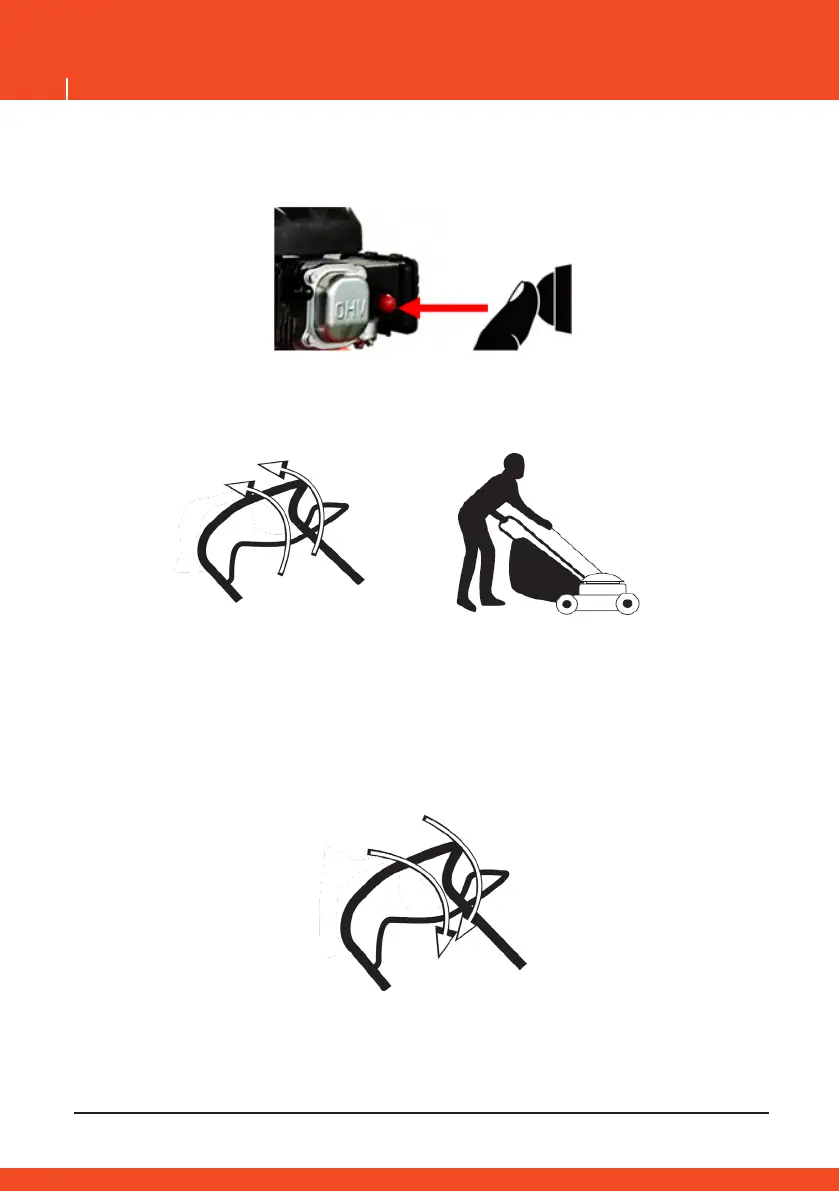 2. Páku brzdy přitáhněte k horní části rukojeti, zatáhněte za startovací