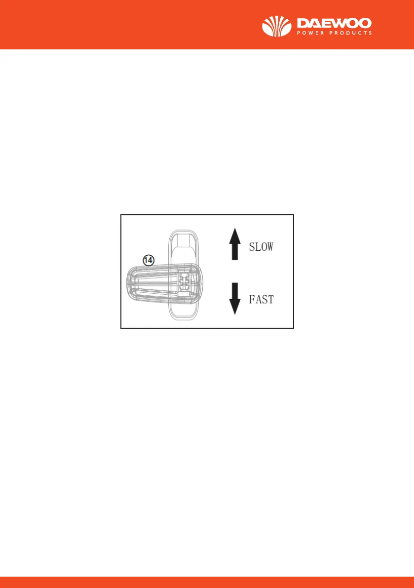 • A gázkar (14) “FAST” irányba történő mozgatásával nagyobb