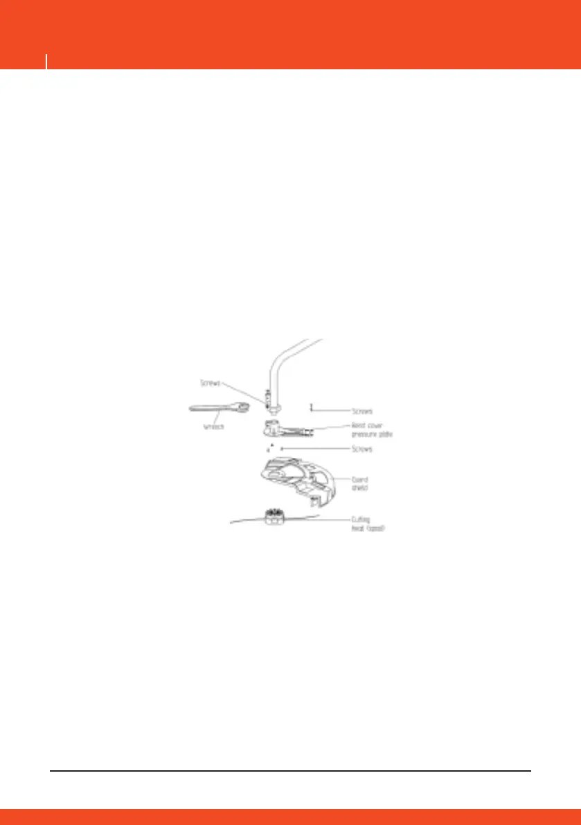 • Fix the lower shaft with a wrench and rotate the grass cutting head