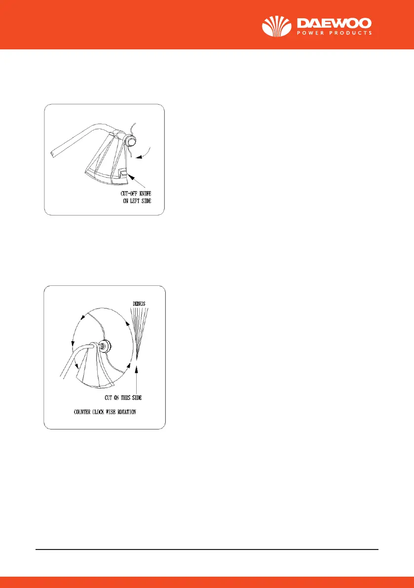 For nearly all cutting, it is good to tilt the line head so that contact is