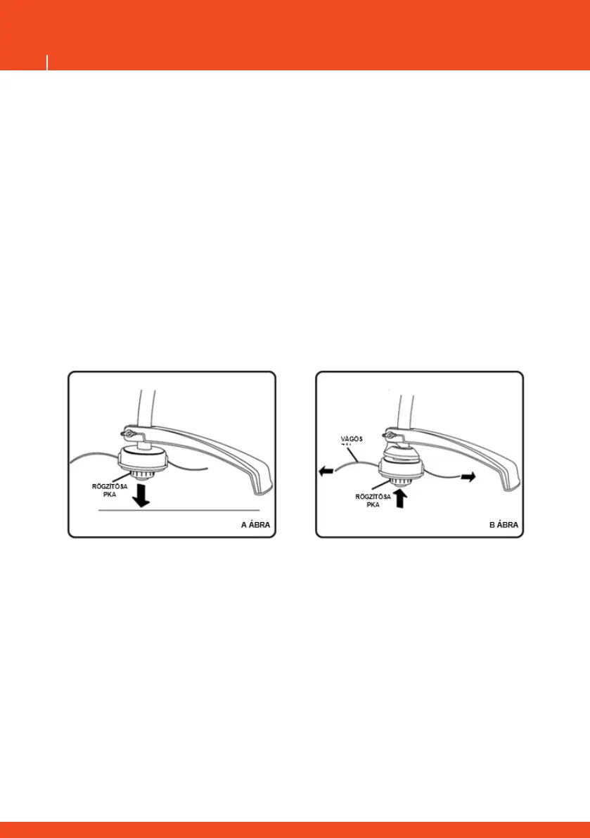 3. A rögzítősapkát lenyomva erőteljesen húzza meg a vágószálat.