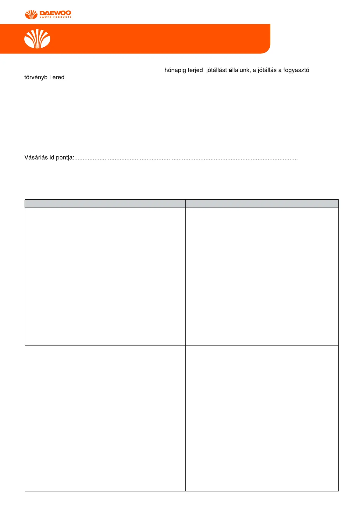 Jótállási jegy kiállítási dátuma:...........................................................................