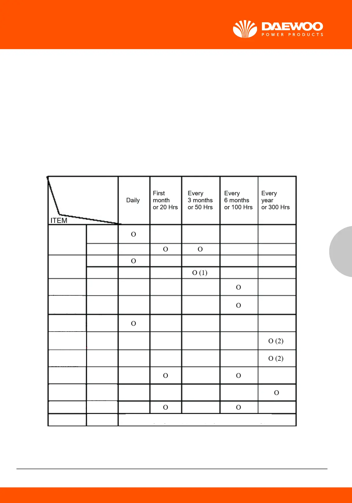 inspect or service as scheduled in the table below.