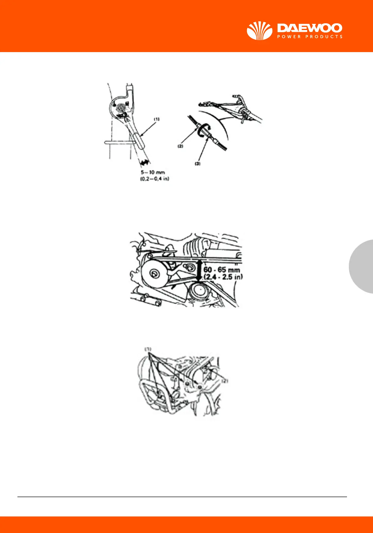 The standard belt tension is 60-65 mm (2.4-2.6 in) at the tension roller with the clutch engaged