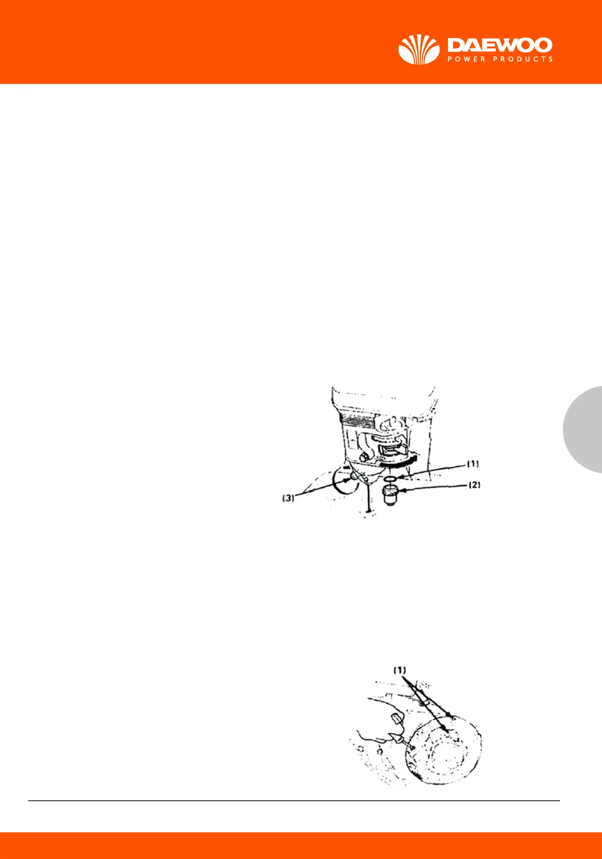 • Drain the carburetor by loosening the drain knob. Drain the gasoline into a suitable container.