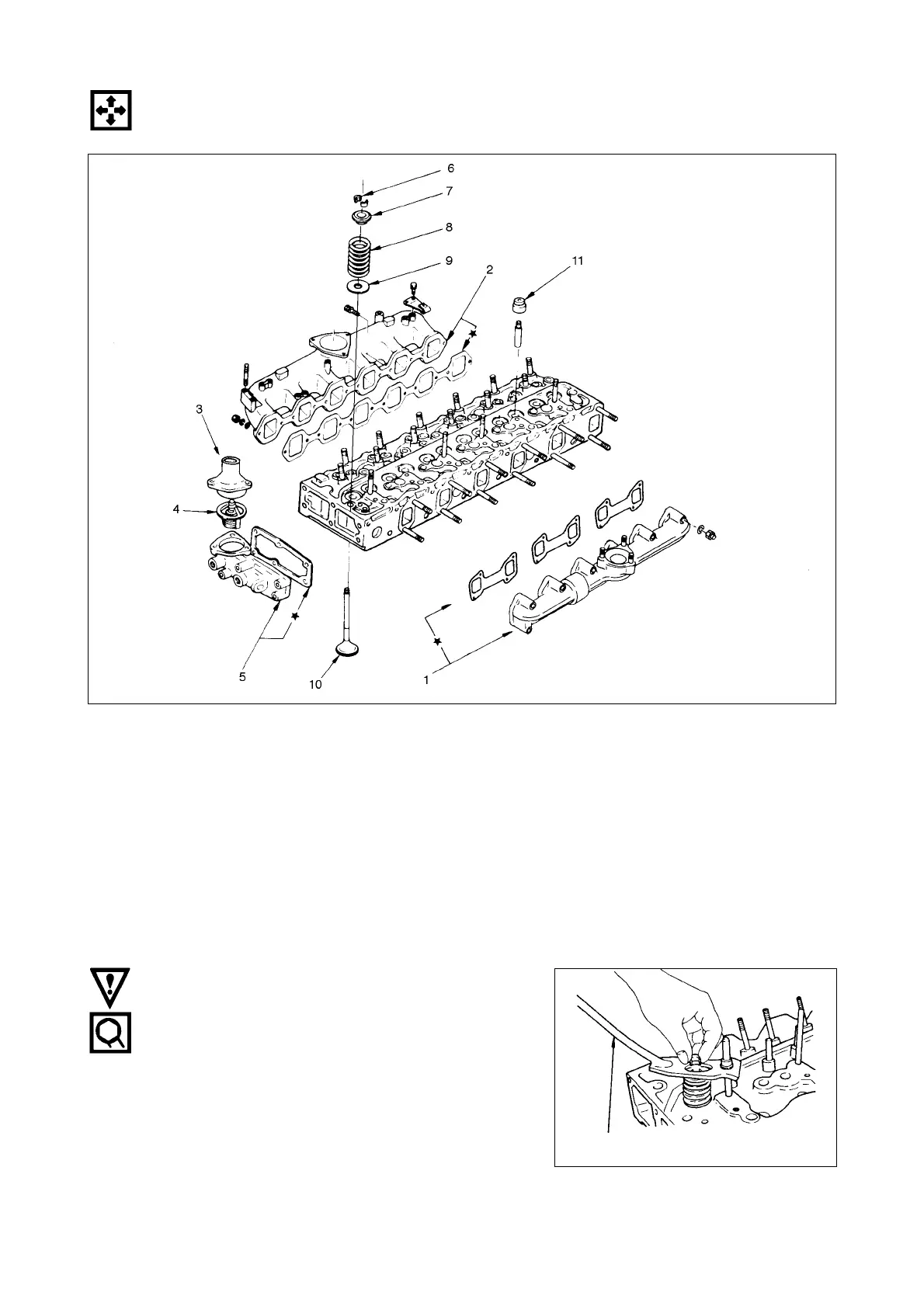 1. Exhaust manifold and gasket 7. Spring seat (upper) or *Valve rotator