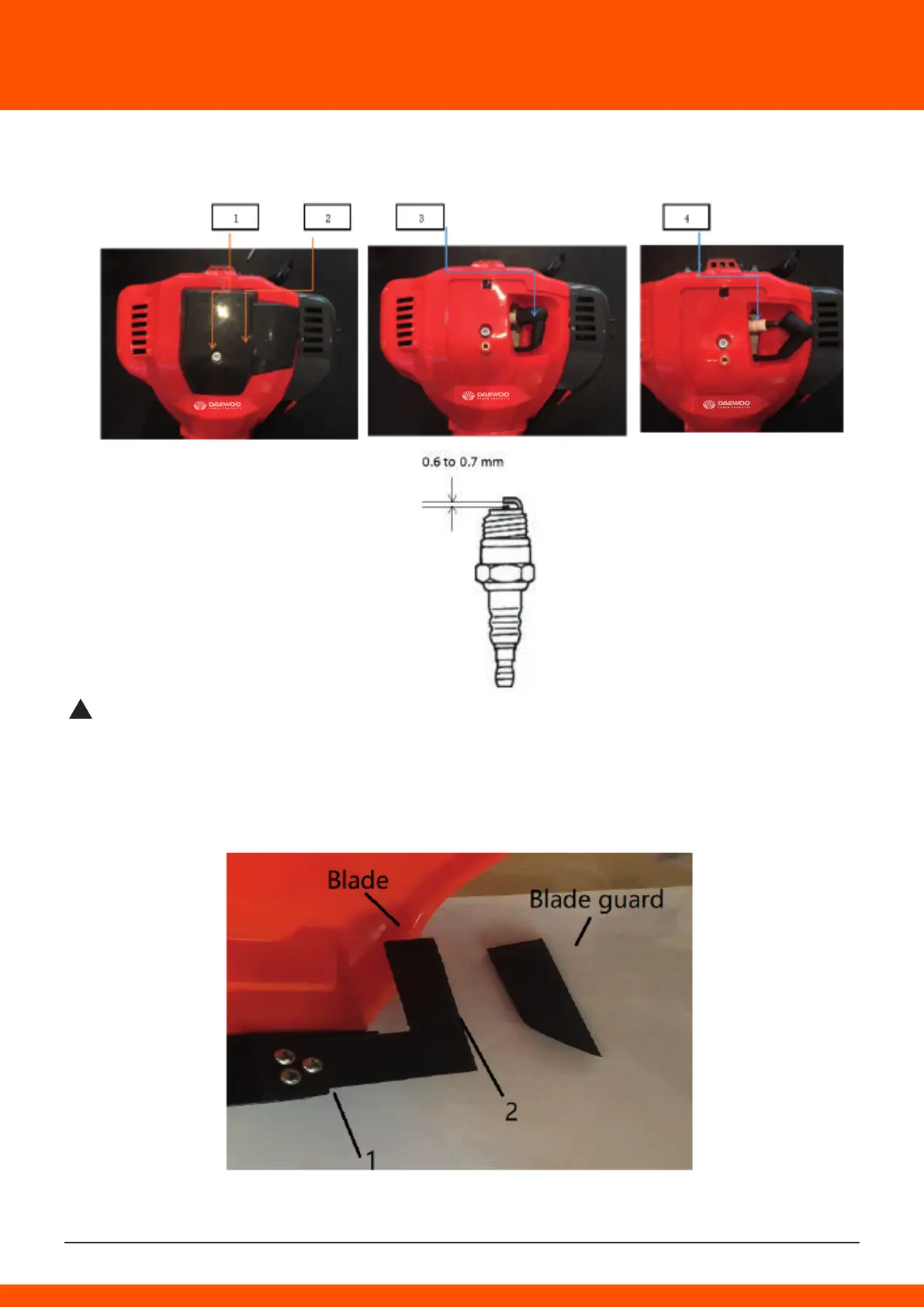 6.2.1. To make sure the engine runs correctly a spark plug gap of 0.6 -0.7 mm must be maintained