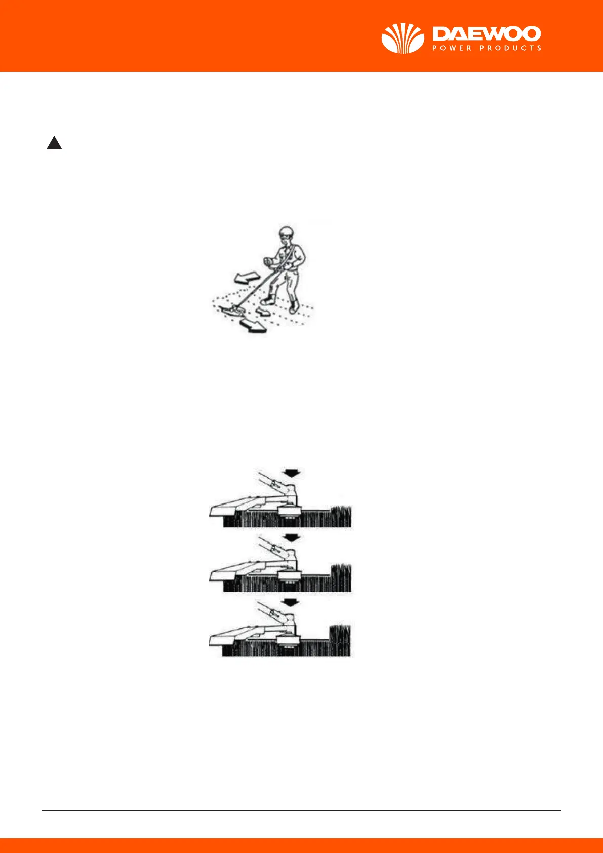5.4.9. To prevent overheating NEVER over cut, instead cut off smaller lengths of grass or brush. You