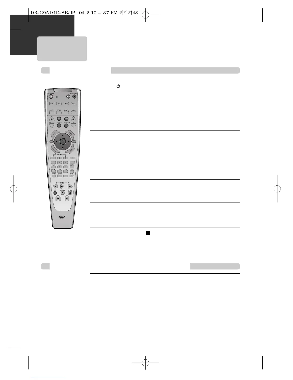 • Press [VCR] button of remote control to change into VCR mode.