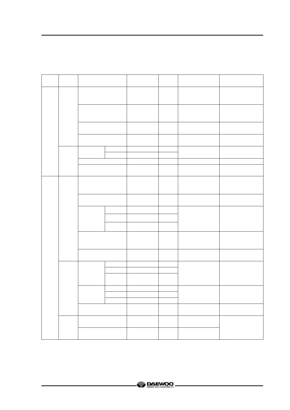 Maintenance specification table