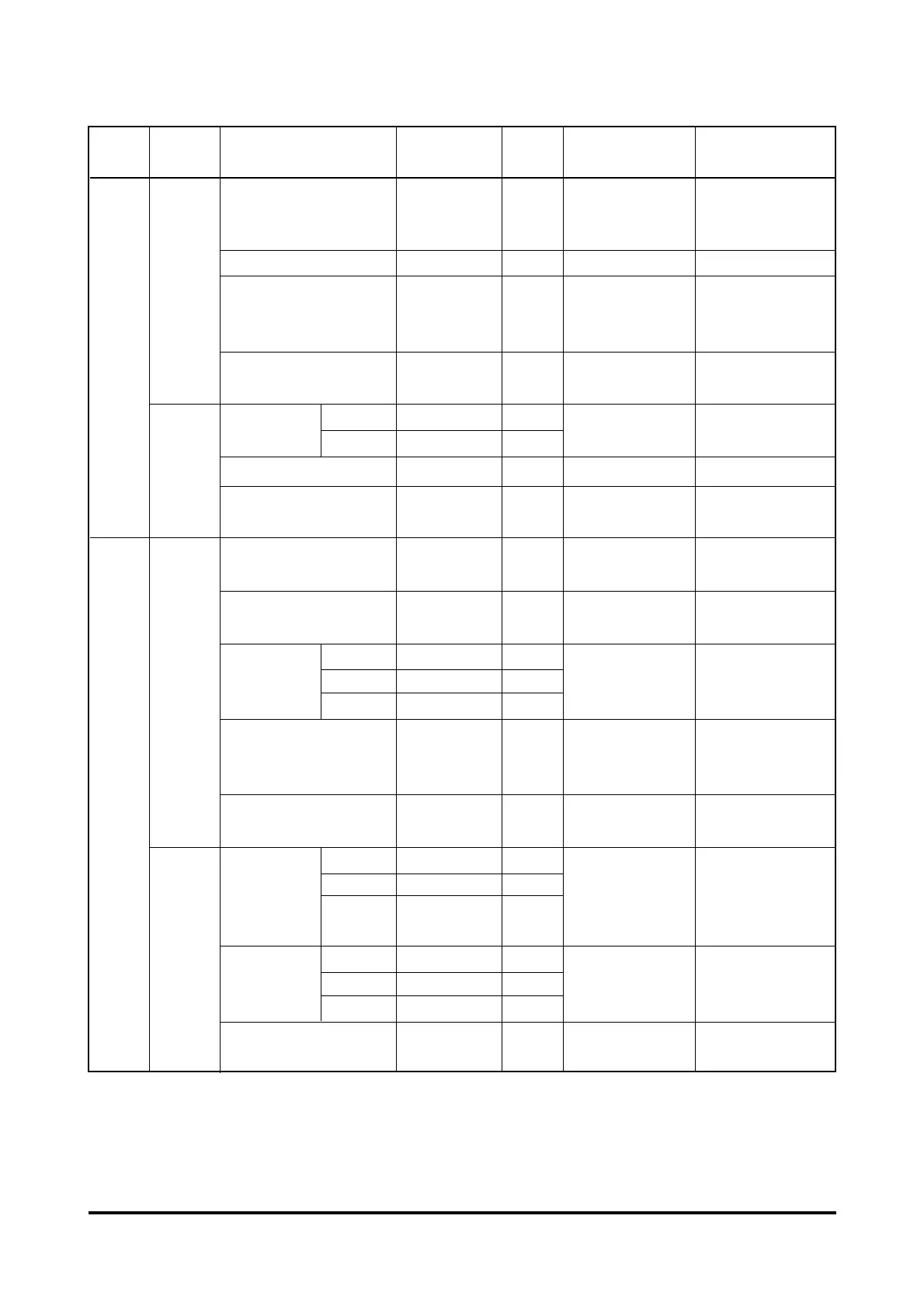 Maintenance specification table
