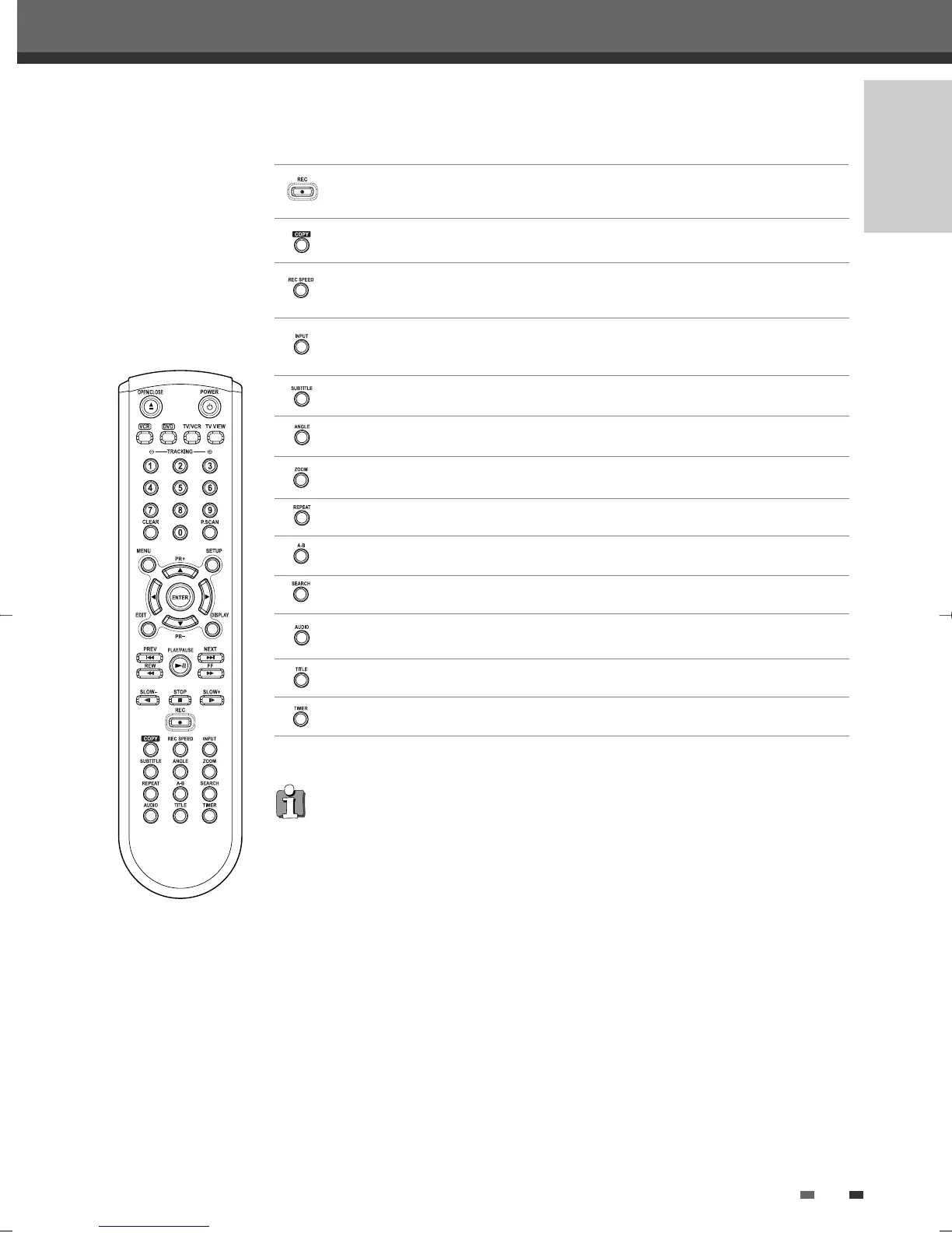 Selects Recording mode: - DVD : HQ (1hr), SP (2hrs), EP (4hrs) or SLP (6hrs).