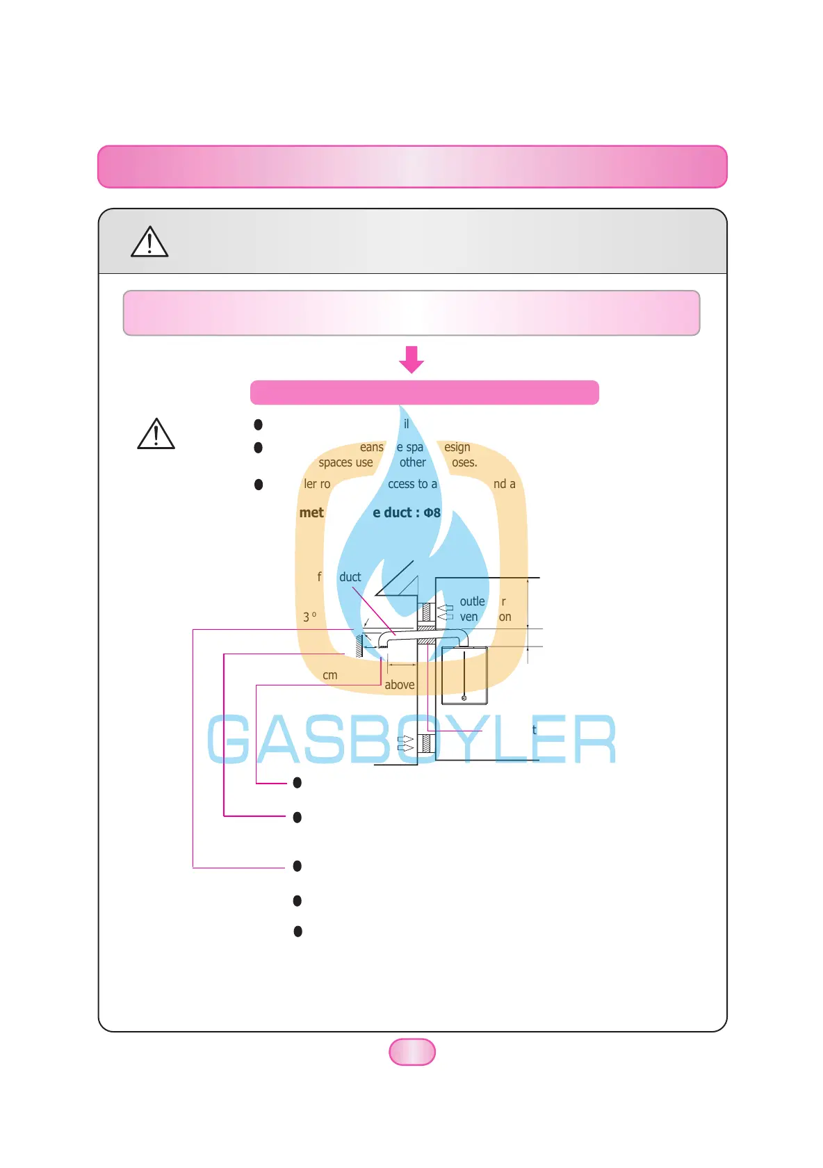 Make sure there is no hole within 60cm which allows flue gas to re-enter.