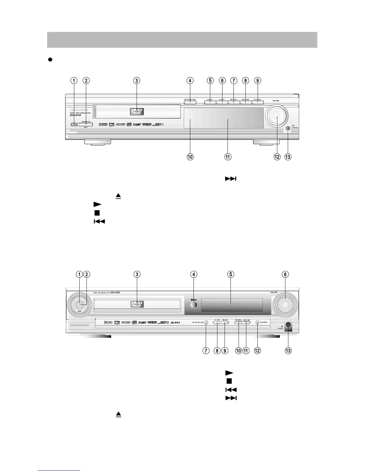 Daewoo DHC-X100 - Location of Users Controls; Front Panel; Display