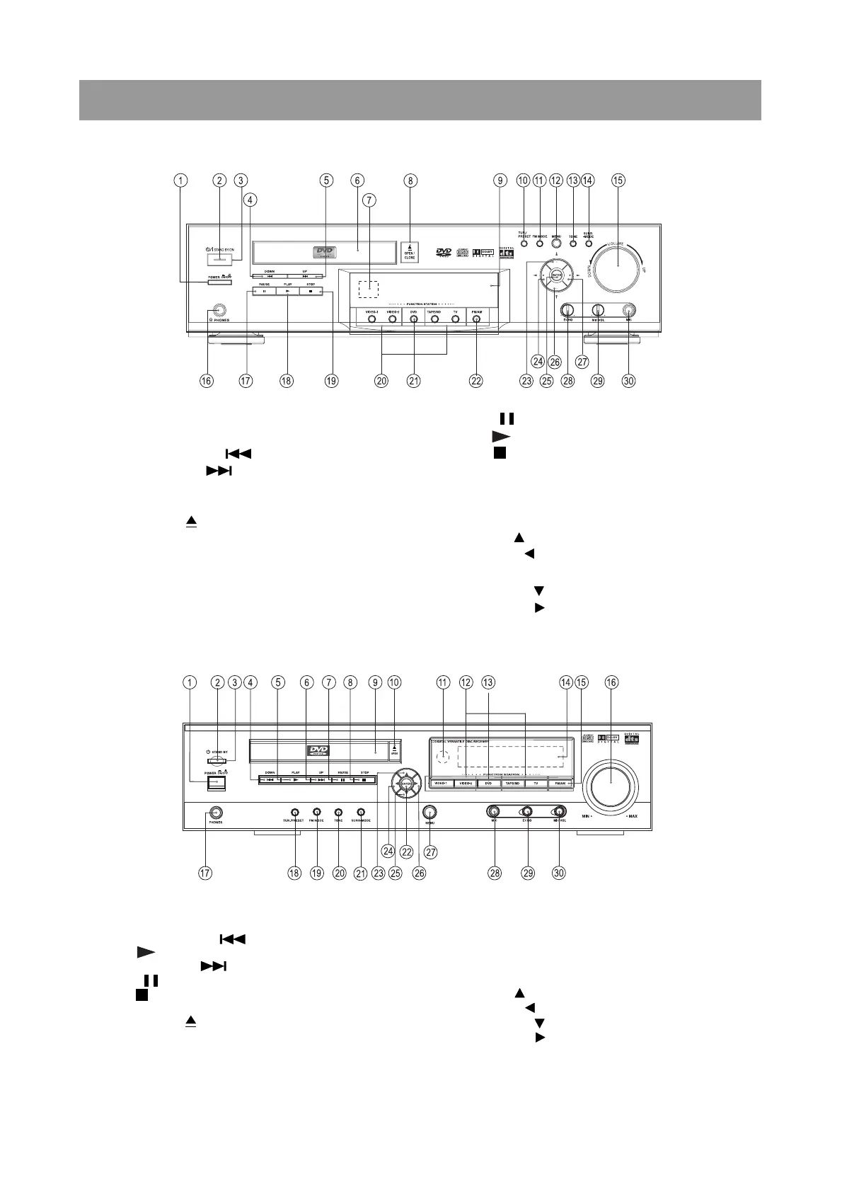 21. Input selector : DVD buttons