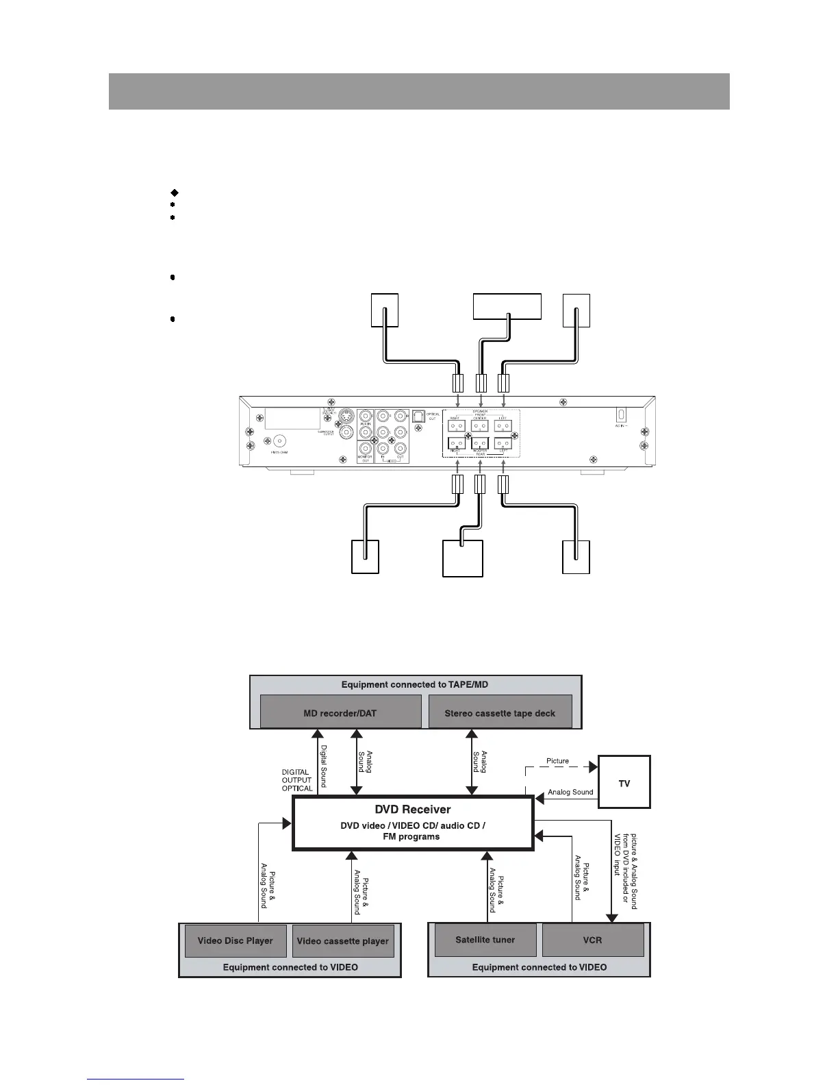 connected.Please check the following information and choose speakers with appropriate impedance for the connections.