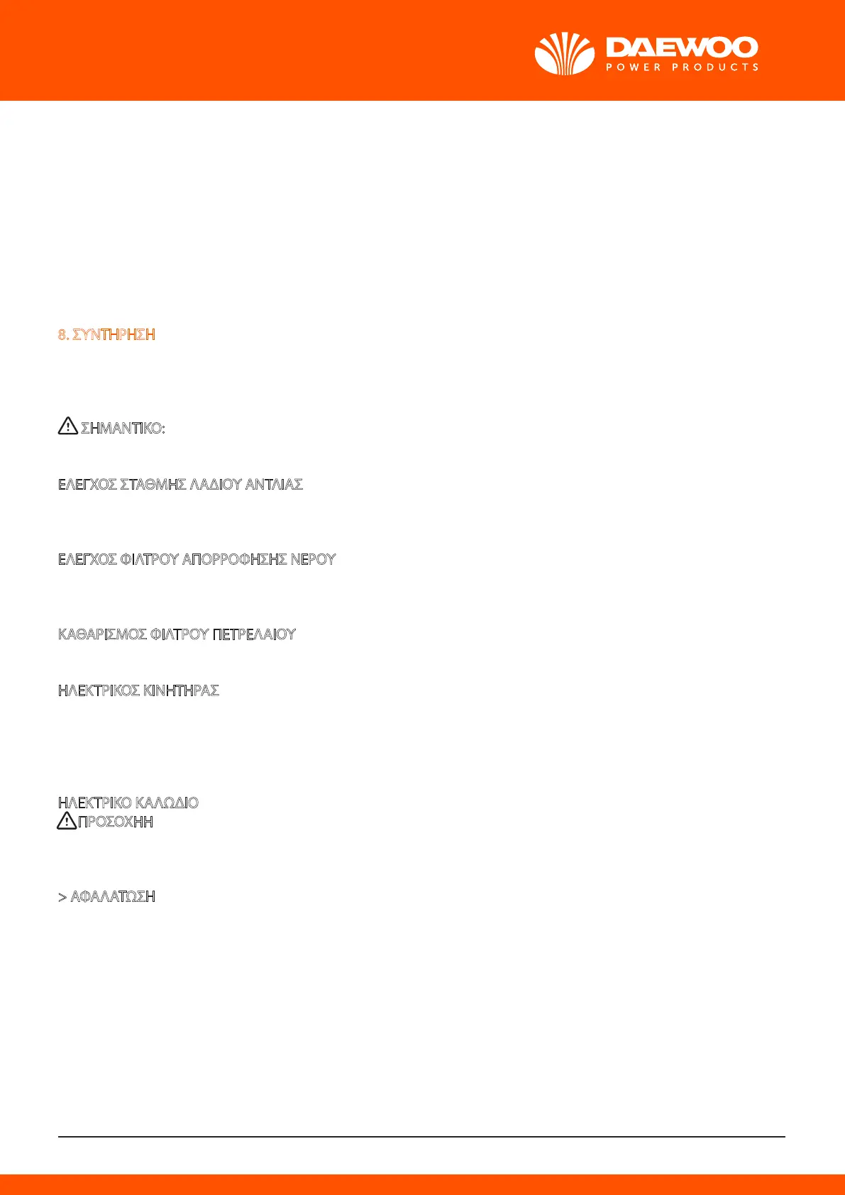 ΡΟΣΟΧΗ: Για όλε τι διαδικασίε συντήρηση του λέβητα, τη αντλία υψηλή πίεση και τη ηχανή
