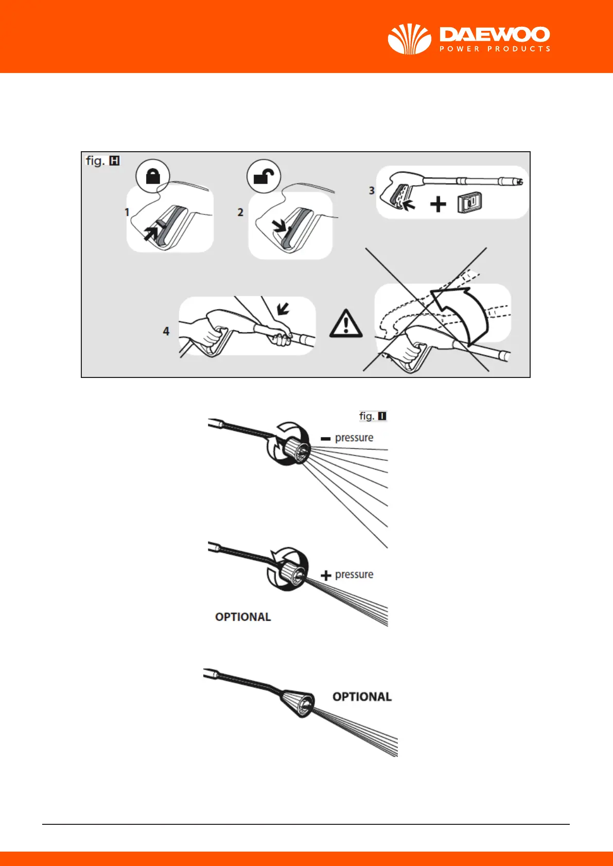 19 VARNING: Se till att högtryckstvätten inte tippar över då du rullar ut och in slangen.