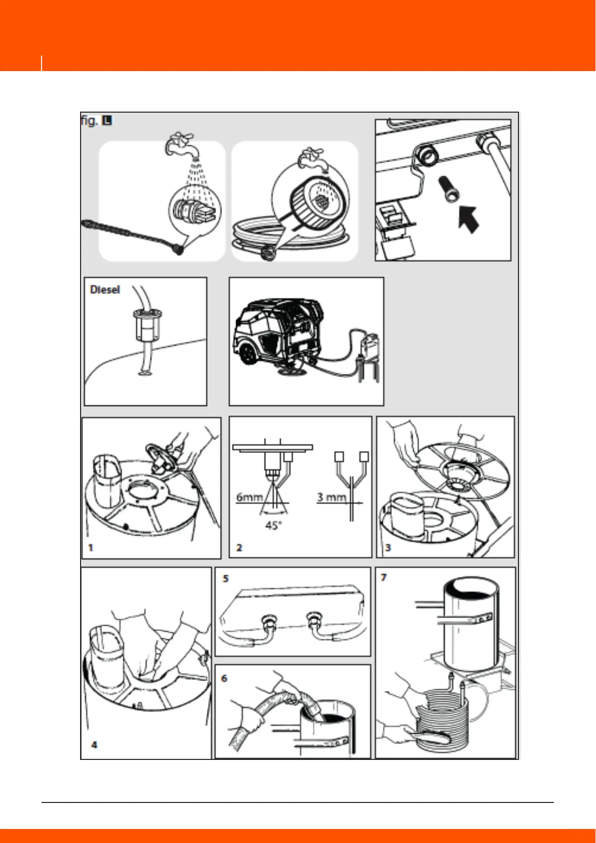 19 VARNING: Se till att högtryckstvätten inte tippar över då du rullar ut och in slangen.
