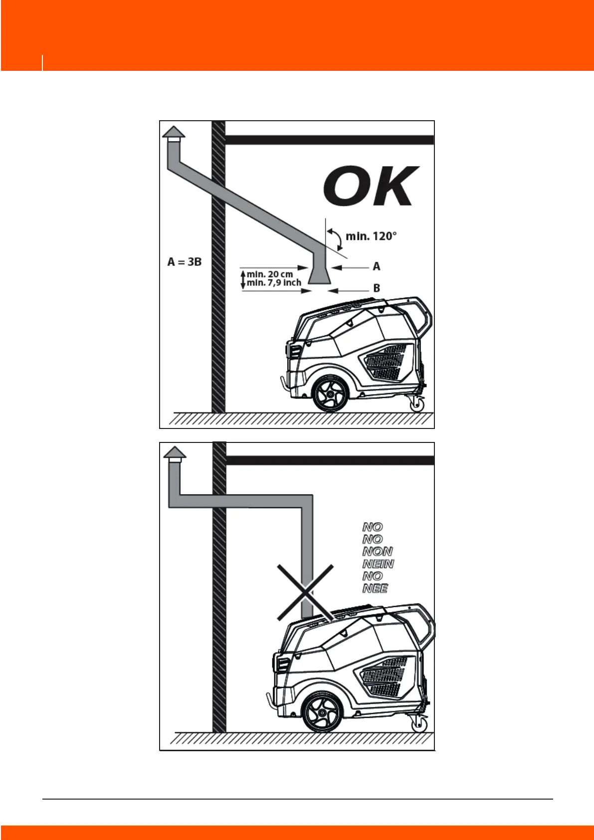ACHTUNG: Überprüfen, dass die Abgase nicht in der Nähe der Lufteingänge ausgestoßen
