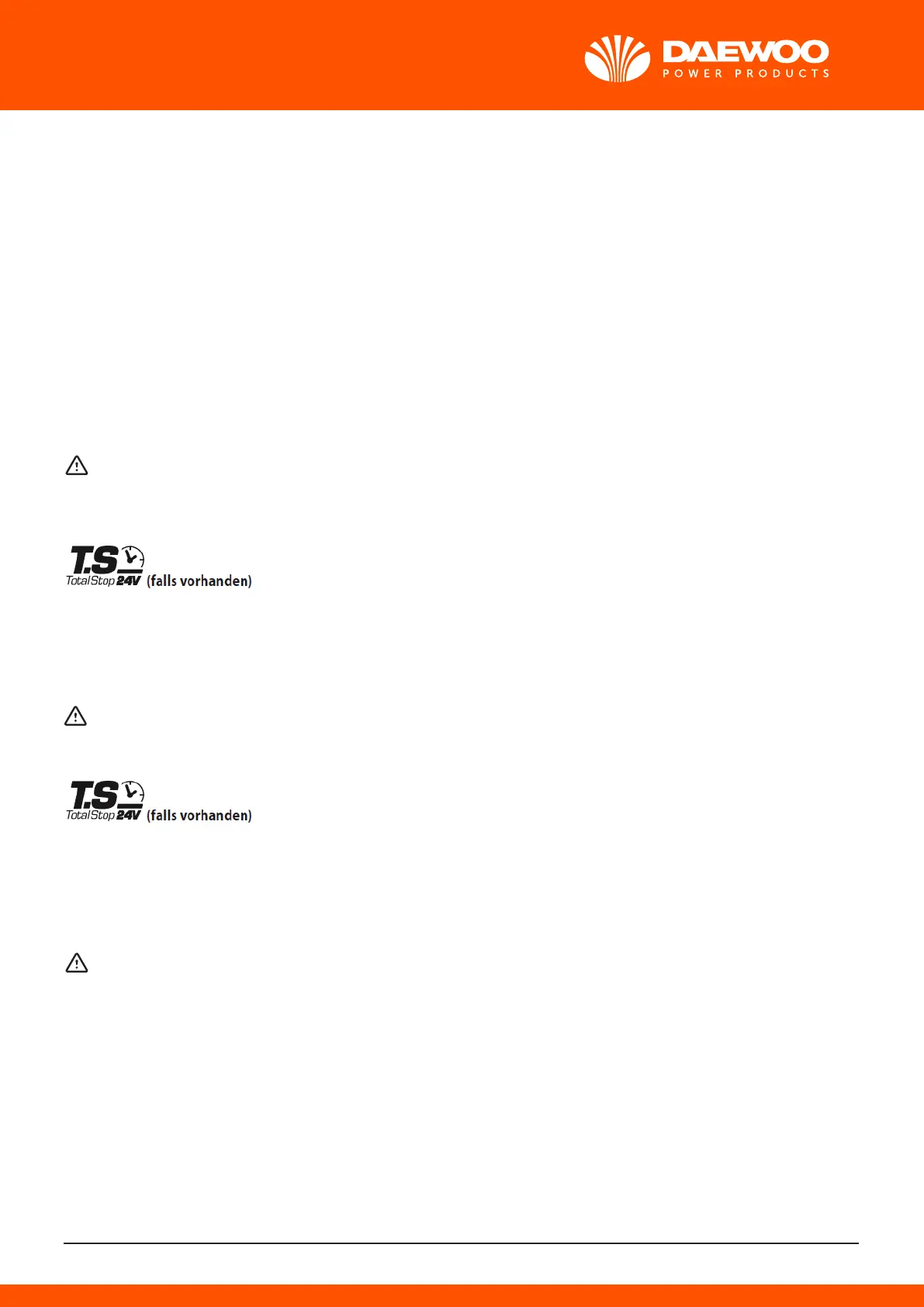 10ACHTUNG: Geräte mit T.S. – Total Stop : man sollte sie nicht länger als 5 Minuten in Stand-By-