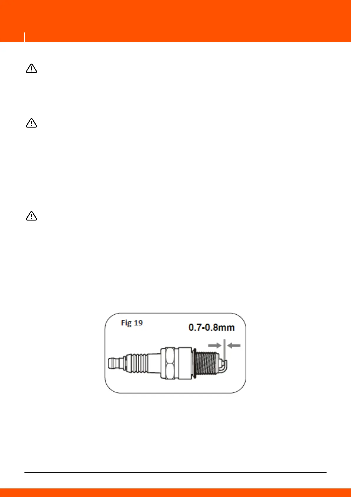 5. Install the spark plug carefully byhand, to avoid cross-threading.