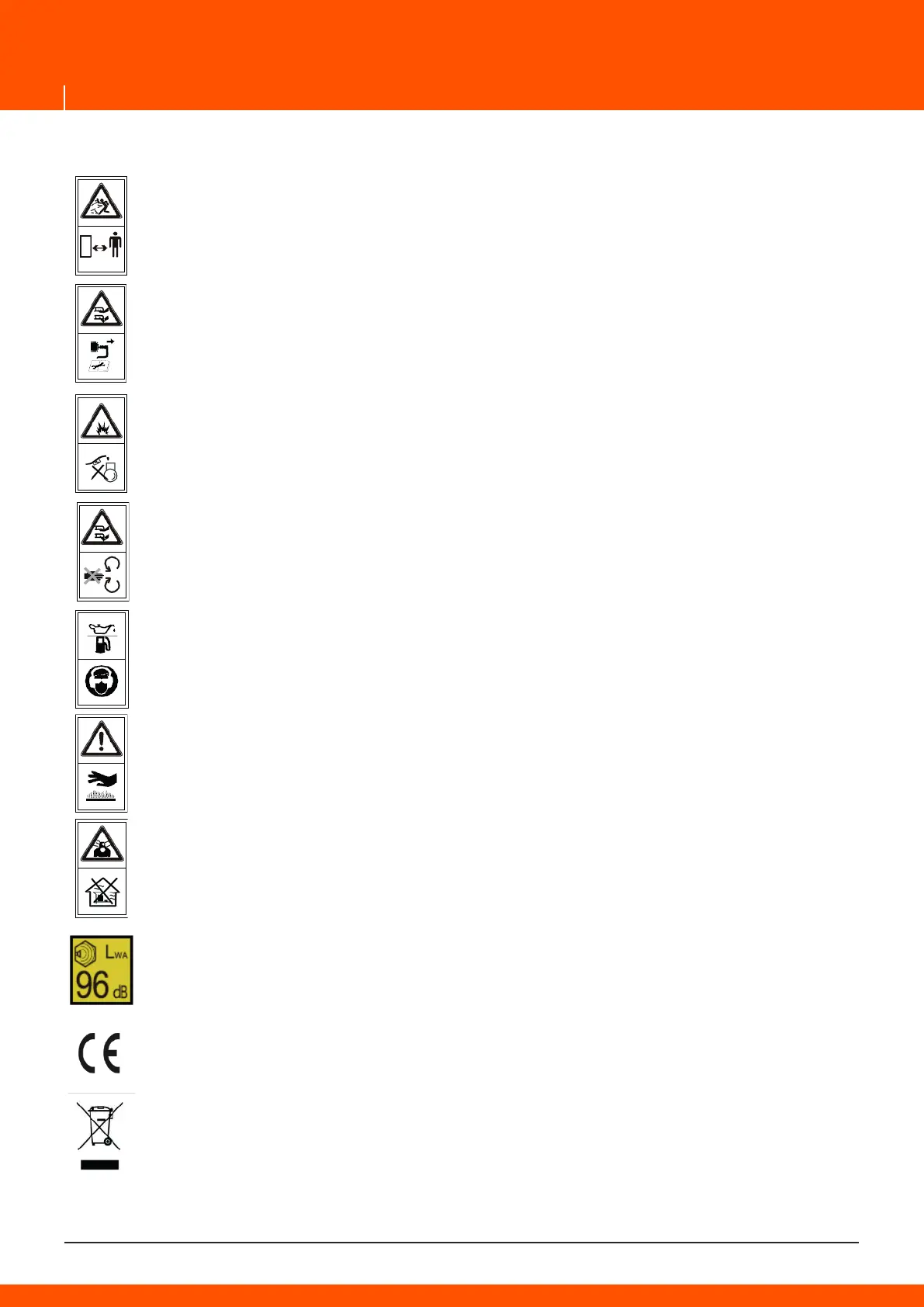 4. To reduce the fire hazard, keep the engine, silencer, battery compartment and petrol storage area
