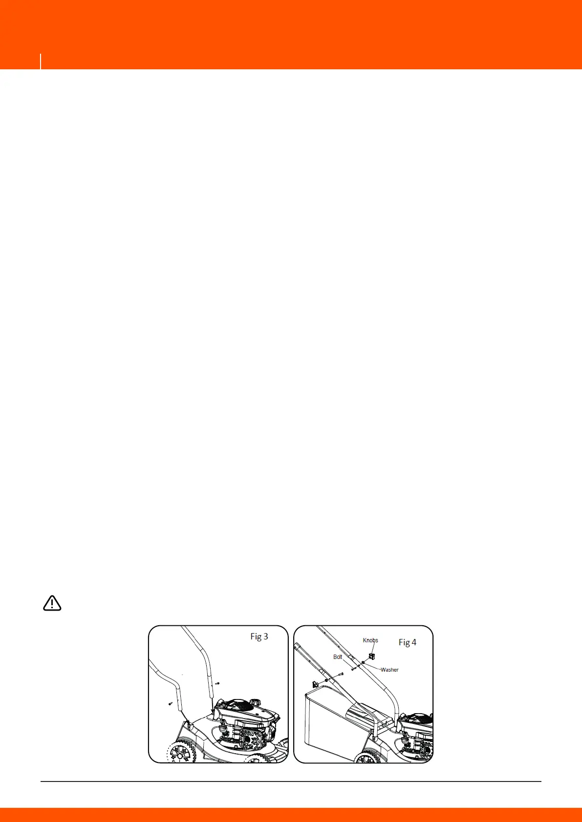 15. Do not tilt the lawnmower when starting the engine or switching on the motor, exceptif the lawn-