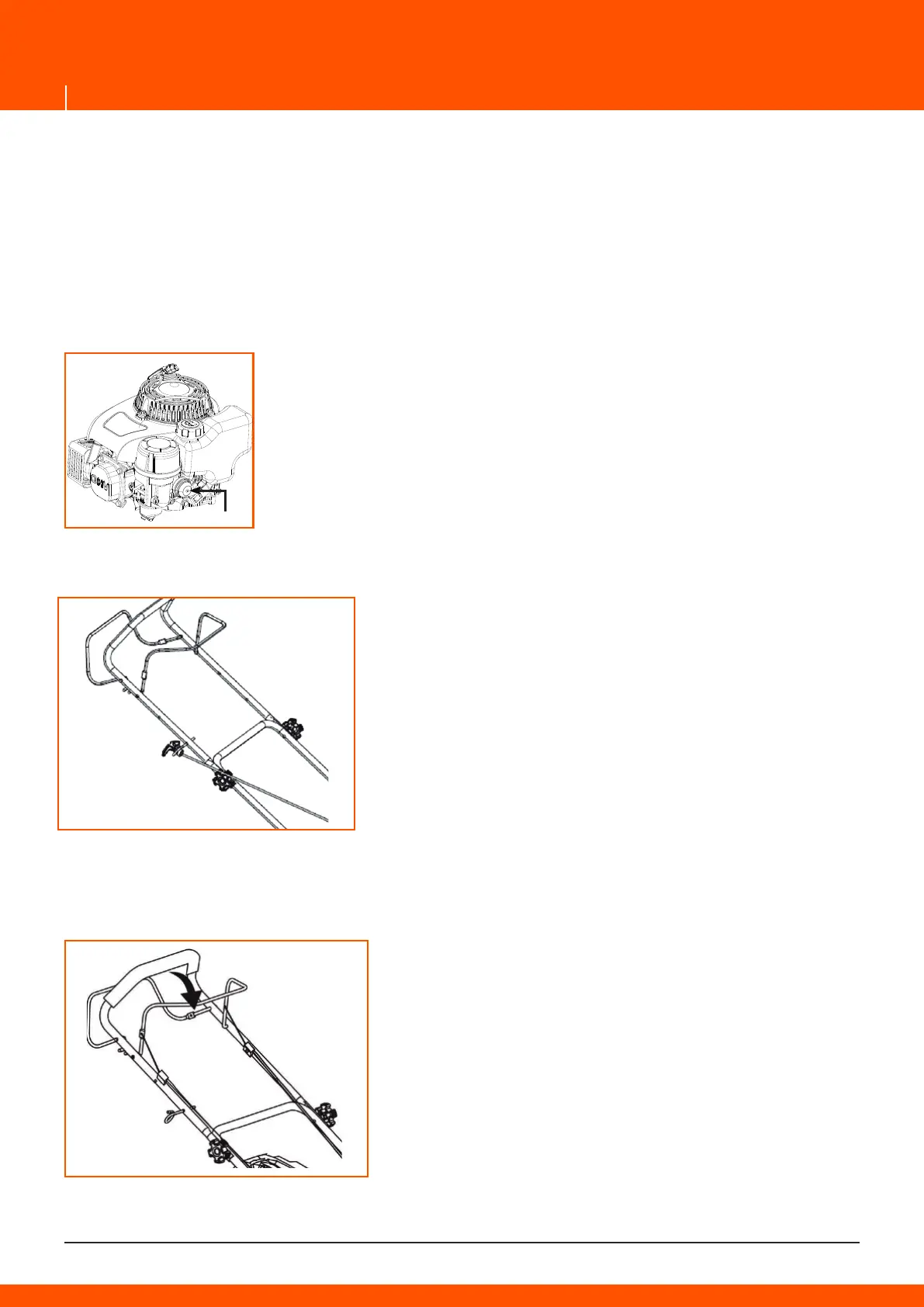 kosačku pre naštartovanie nakloniť; V takom prípade nenakláňajte kosačku vo väčšej miere ako to je