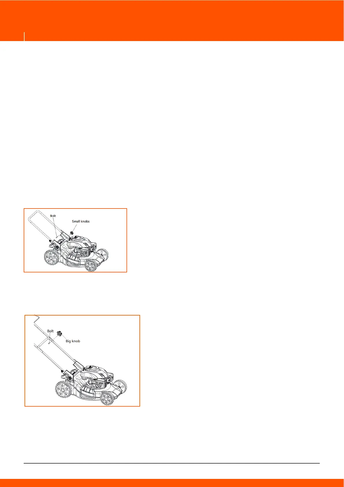 MEGJEGYZÉS: Mielőtt az oldalra helyezné a benzines fűnyíró gépet, teljesen engedje le az üzeman-