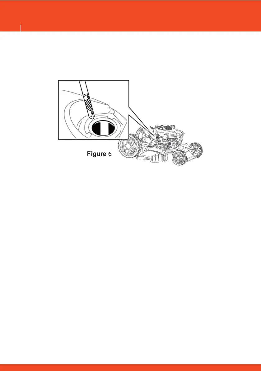 6). Pokud je hladina oleje nízká, omalu nalévejte olej do otvoru podél