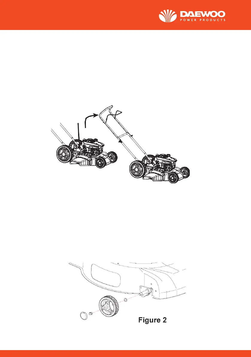 1. Vyberte skrutku rukoväte z tela kosačky. Dôležité: Pri montáži ruko-
