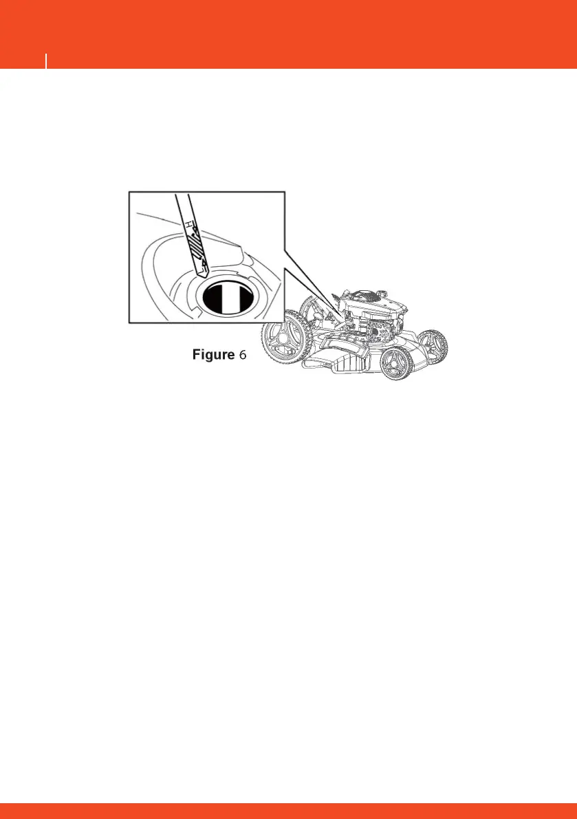 2. Vytiahnite mierku a skontrolujte hladinu oleja (obr. č. 6). Ak je hladina