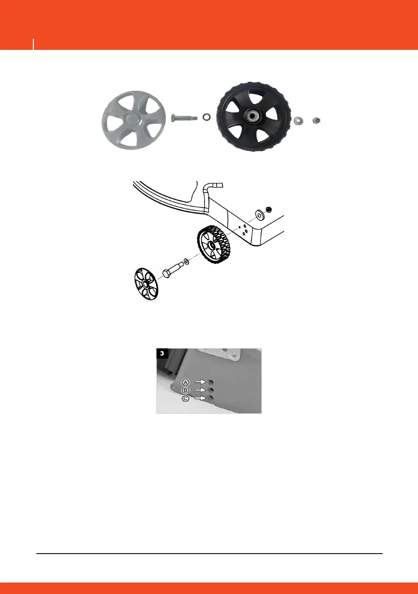 Systém nastavenie výšky kosenia: Je možné nastaviť 3 polohy (A/B/C):