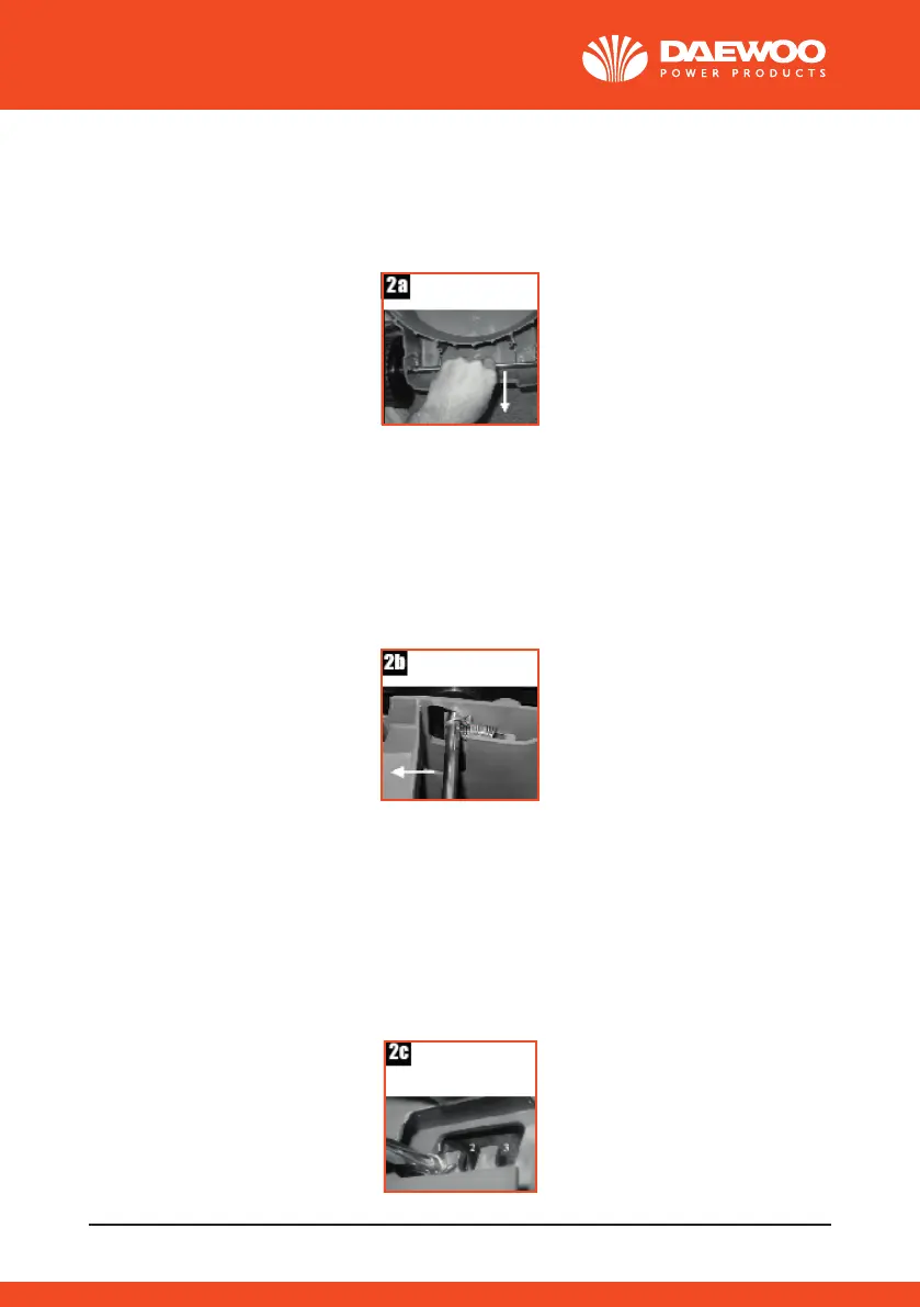 2. To adjust the rear wheel cutting height position (g. 2b)