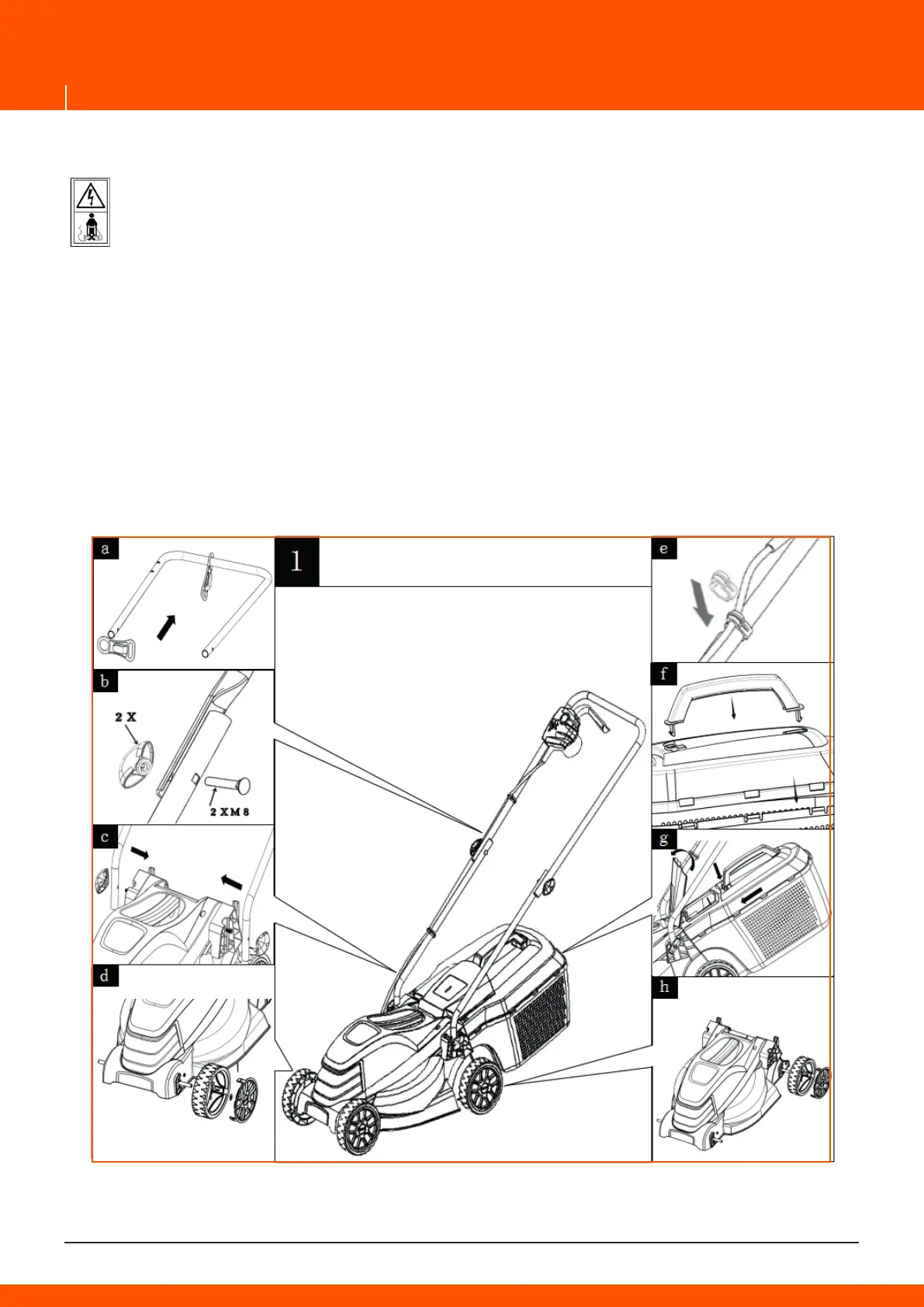6. Grass collecton box assembly. Assemble two halves and fix them together.(Fig.1f)