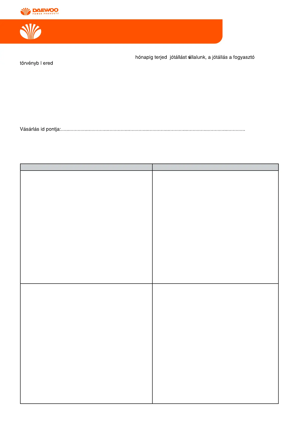 Jótállási jegy kiállítási dátuma:...........................................................................