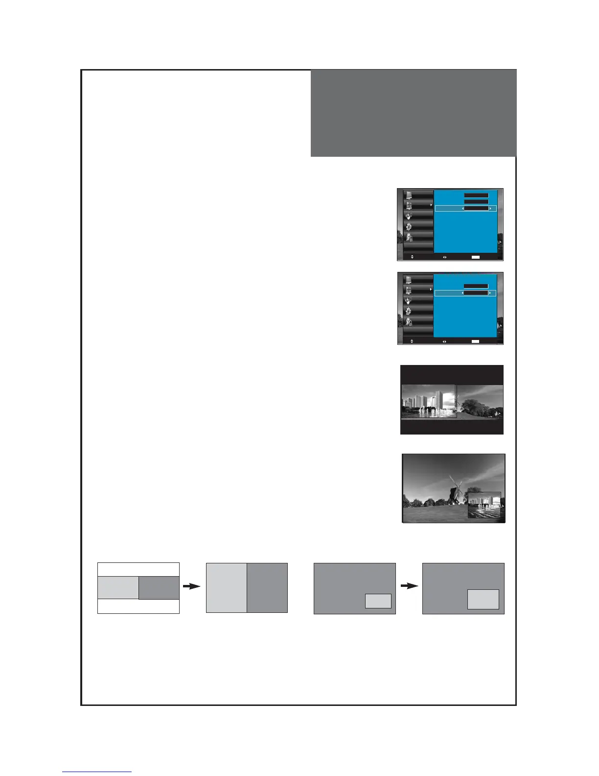 " buttons to select, PiP mode changes as follow: