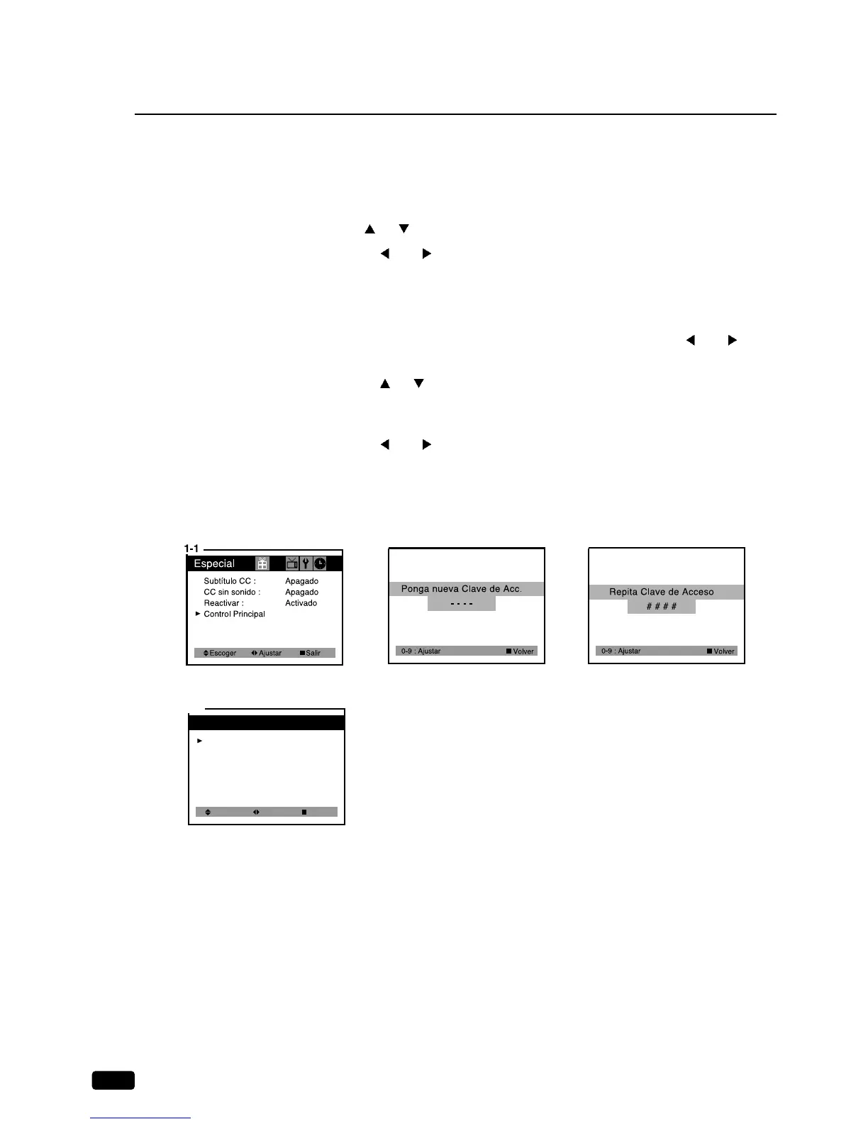 Control Paternal se verá en el display. Si es la primera vez que esta usando su menú