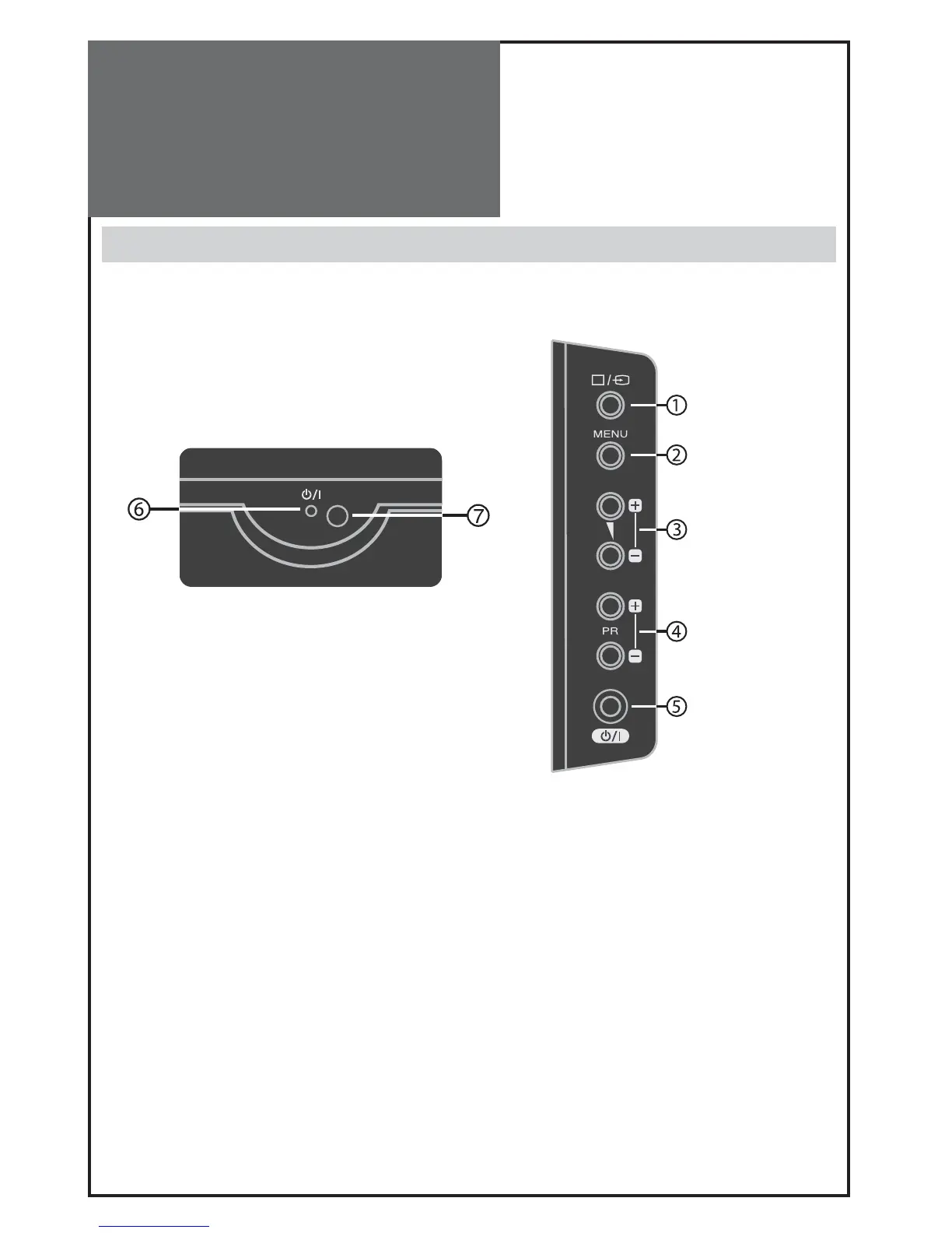 ⑤ POWER ON button : Use this button to change from TV STAND-by mode to TV ON mode.